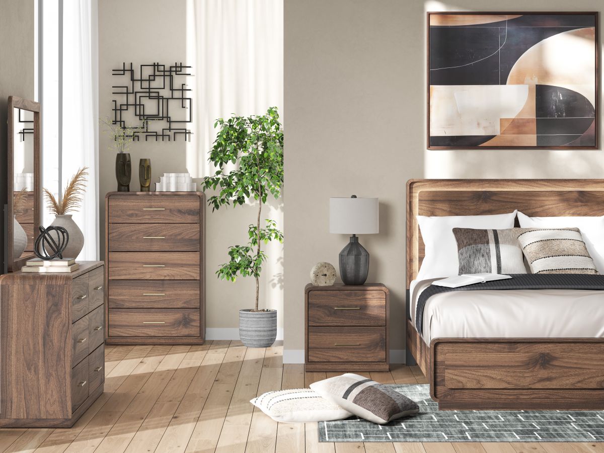 Grace your restful retreat with an added dose of refinement. This queen panel bed showcases a stunning rich brown wood tone, while the rounded frame softens its silhouette to elevate the look. And it seamlessly incorporates forward-thinking function, with an LED backlight in the headboard that can be easily accessed from both sides of the bed. It’s curated, contemporary and utterly chic.
