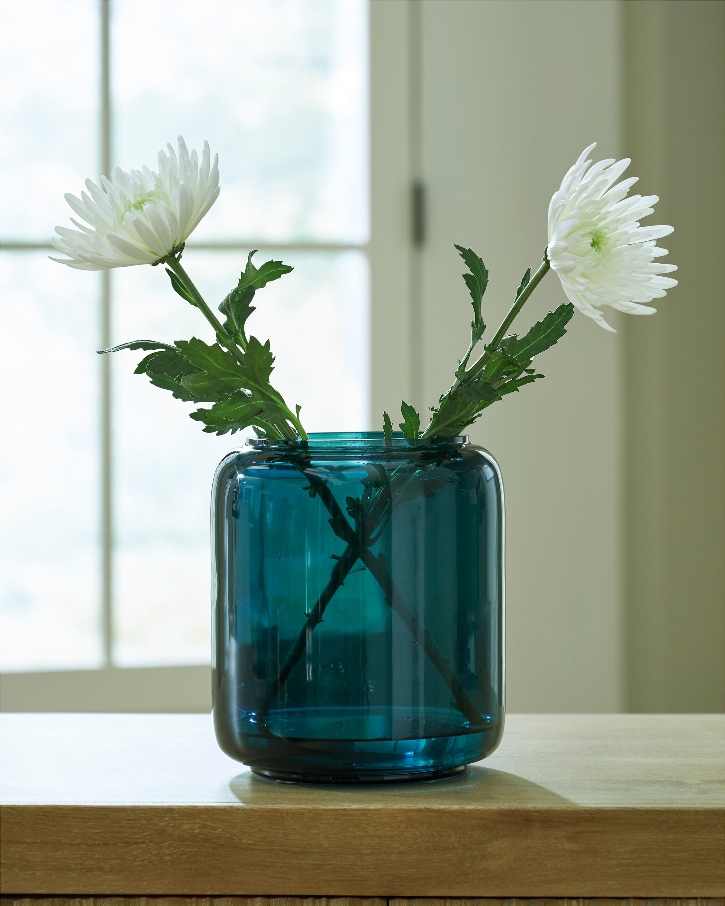 Beautifully crafted with blown glass, this vase is simply elegant in form. Its teal finish incorporates a subtle pop of contemporary color into your decor. Whether this piece is greeting you on an entryway table or completing a centerpiece arrangement, it's sure to make a stylish impression.