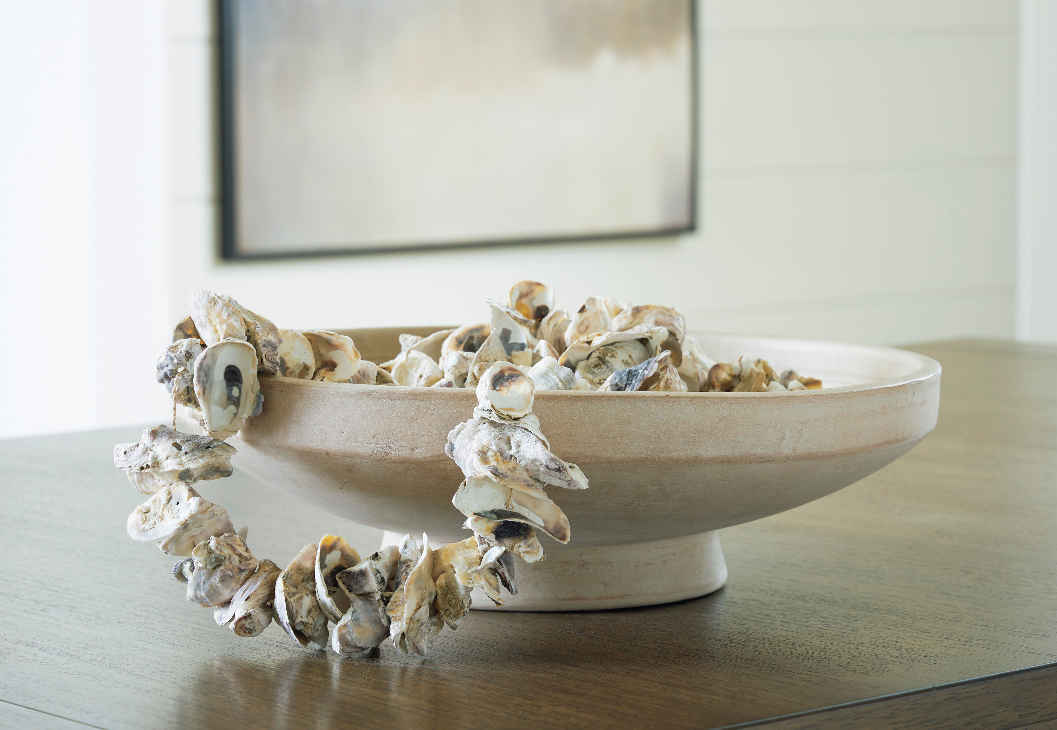 Crafted with care, this bowl recalls the beauty of found artifacts. Its terra cotta construction and antiqued beige coloration lend a classic look and feel to the shapely silhouette. Slight differences in finish highlight the character and charm of each individual piece.