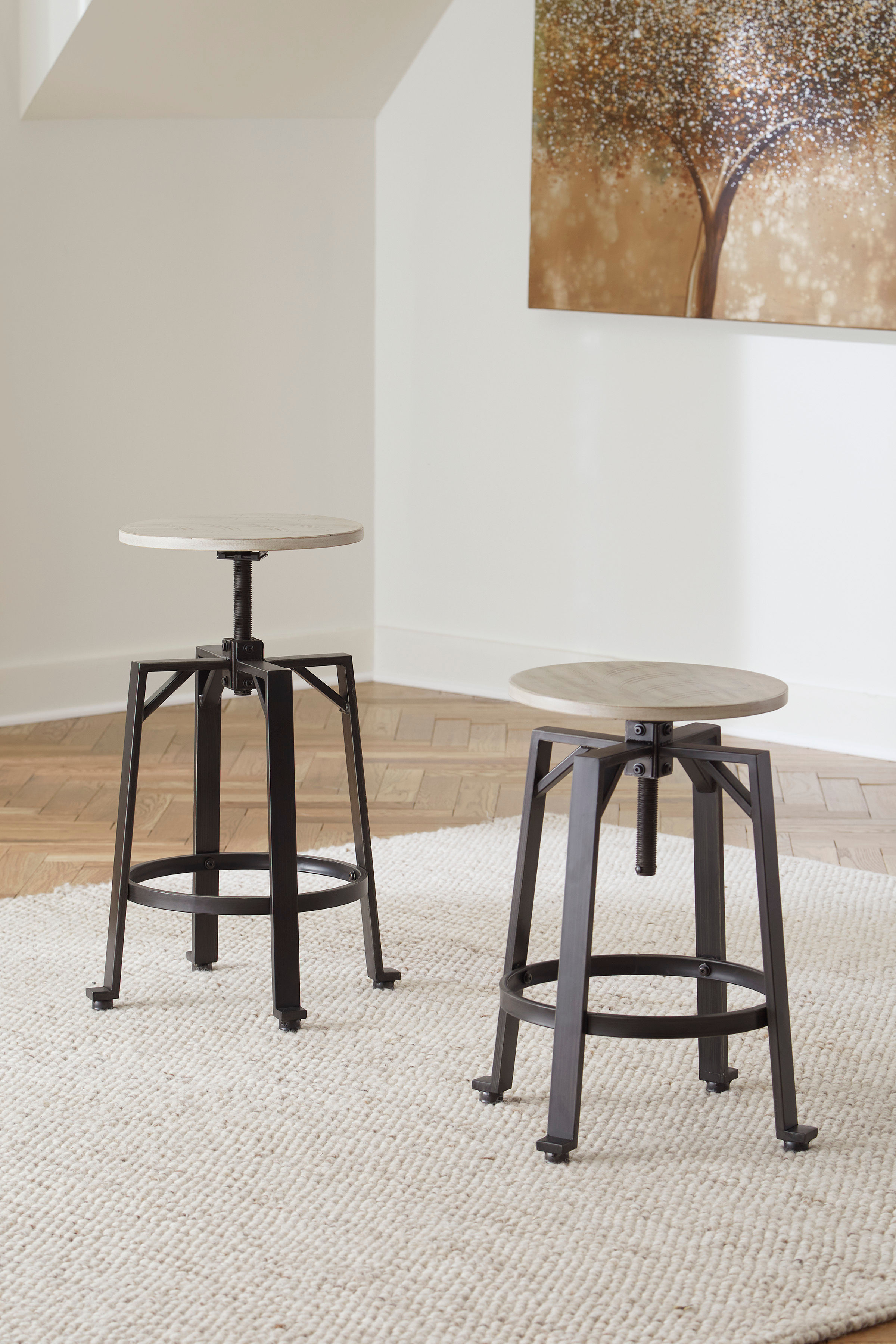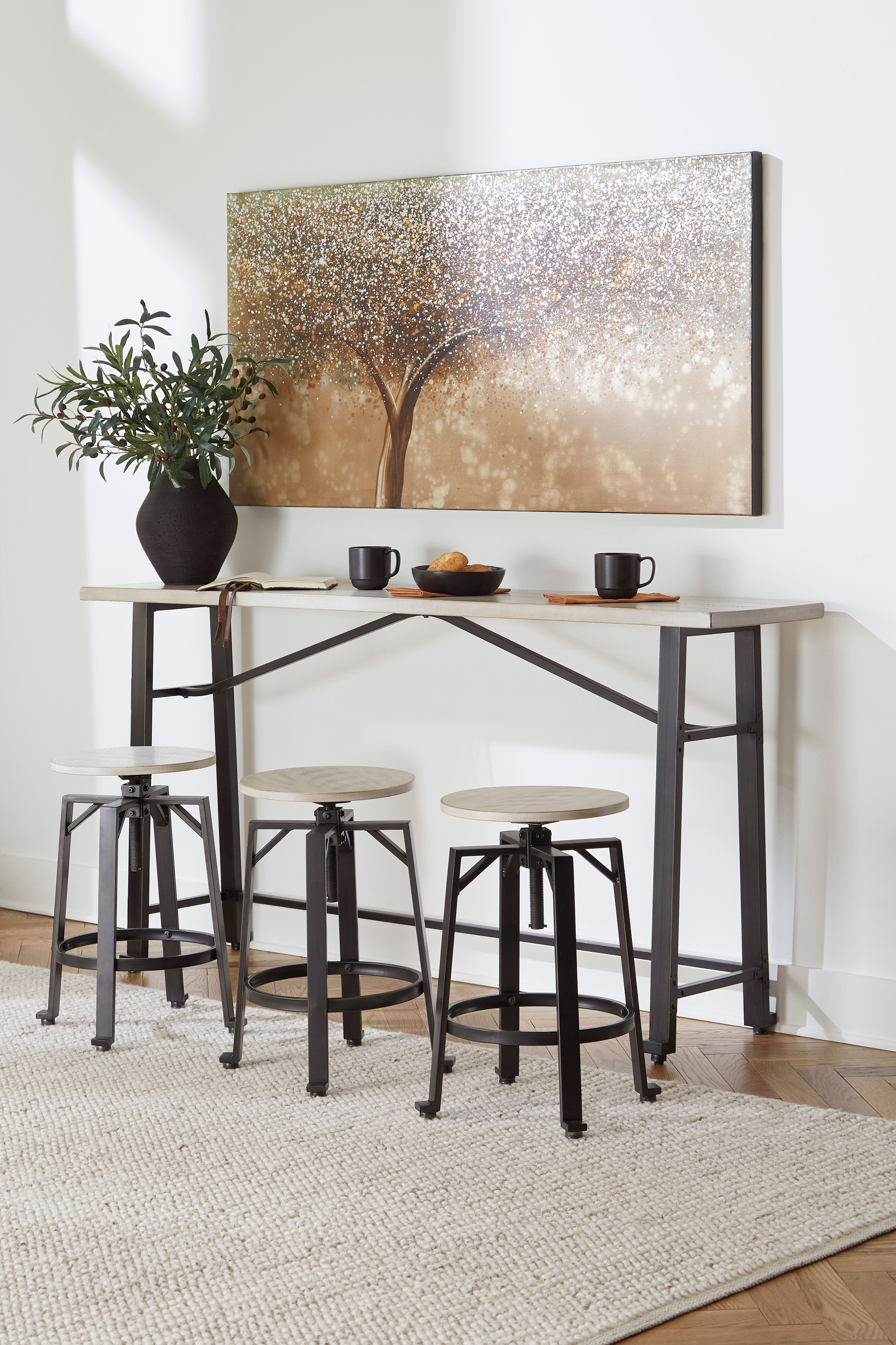 Add a rustic-yet-refined look to your home with the two-tone Karisslyn swivel stool. Its distressed whitewash wood seat with black metal frame conveys an inviting farmhouse style. This charmer easily moves from counter to pub height, giving you and your guests the freedom to sit comfortably while adding a casually cool industrial vibe to your table.