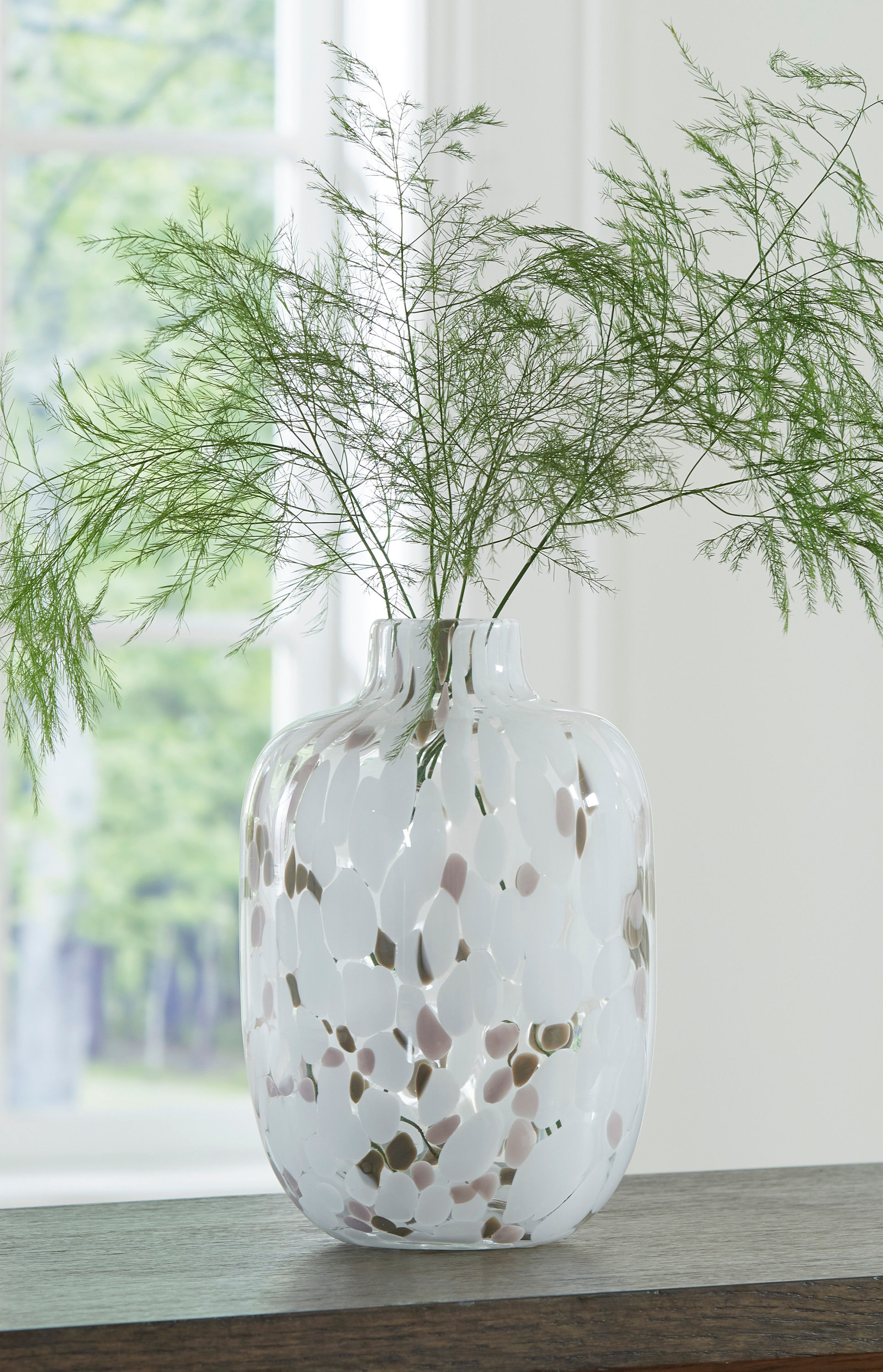 Be inspired by the artistry of blown glass. This beautifully crafted vase is a casual take on a classic silhouette, with versatile neutral hues that are right at home in settings from farmhouse to modern. Drop in the season’s florals for on-trend appeal.