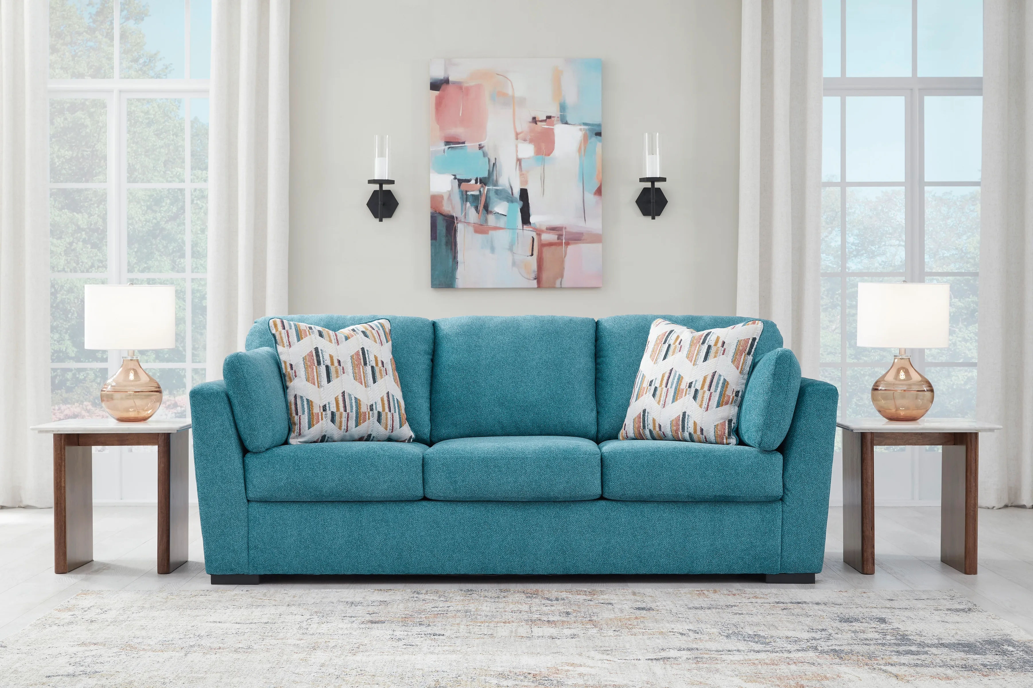 You want your home to reflect your modern, trendy eye for design. The Keerwick sleeper sofa is here to help. Bold, bright and beautiful, it adds a fashion-forward pop of color to your living room. Velvet-like upholstery and matching bolster pillows keep comfort at top of mind. And when overnight guests drop by, a built-in queen mattress effortlessly accommodates. How’s that for fresh style and functionality?