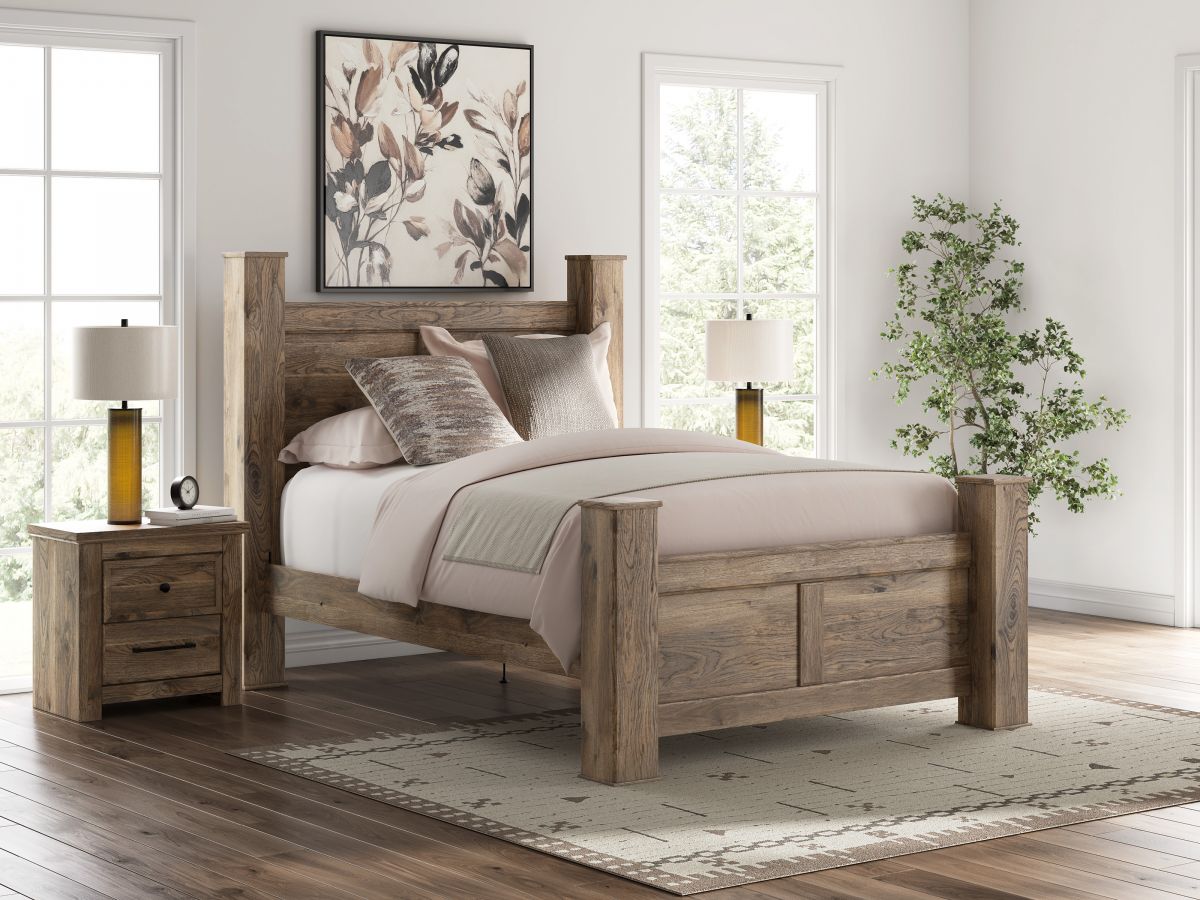 Classically chic. This queen poster bed marries traditional design with modern accents. Its deep brown finish recalls the authentic touch of hickory grain for a rich look and feel. Thick posts and a large-scale silhouette lend an elevated air. Sincere in its styling, this piece sets the scene for a warm, welcoming vibe in your bedroom.
