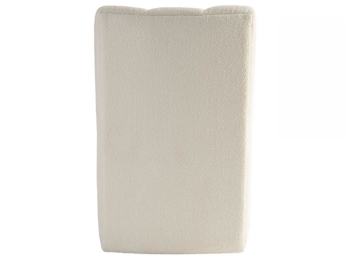 The Kylo Side Chair offers a bold reinterpretation of contemporary luxury, boasting a seat with pronounced tufting that creates a rich tapestry of deep ridges and sumptuous comfort. Clad in the sophisticated Canberra Ivory Fabric, the chair's design is accentuated by three elegantly upholstered vertical sections, each contributing to its visual allure. Mounted on sleek casters, it combines effortless mobility with a modern, refined aesthetic.