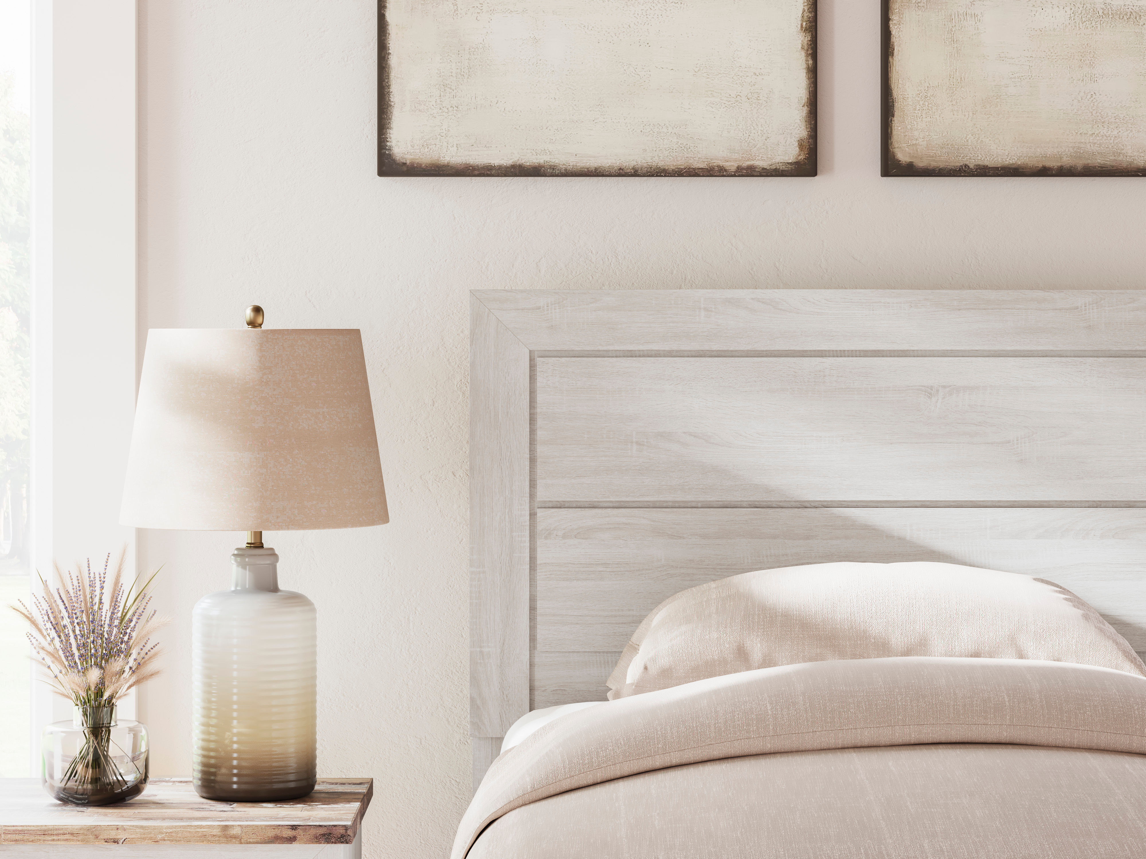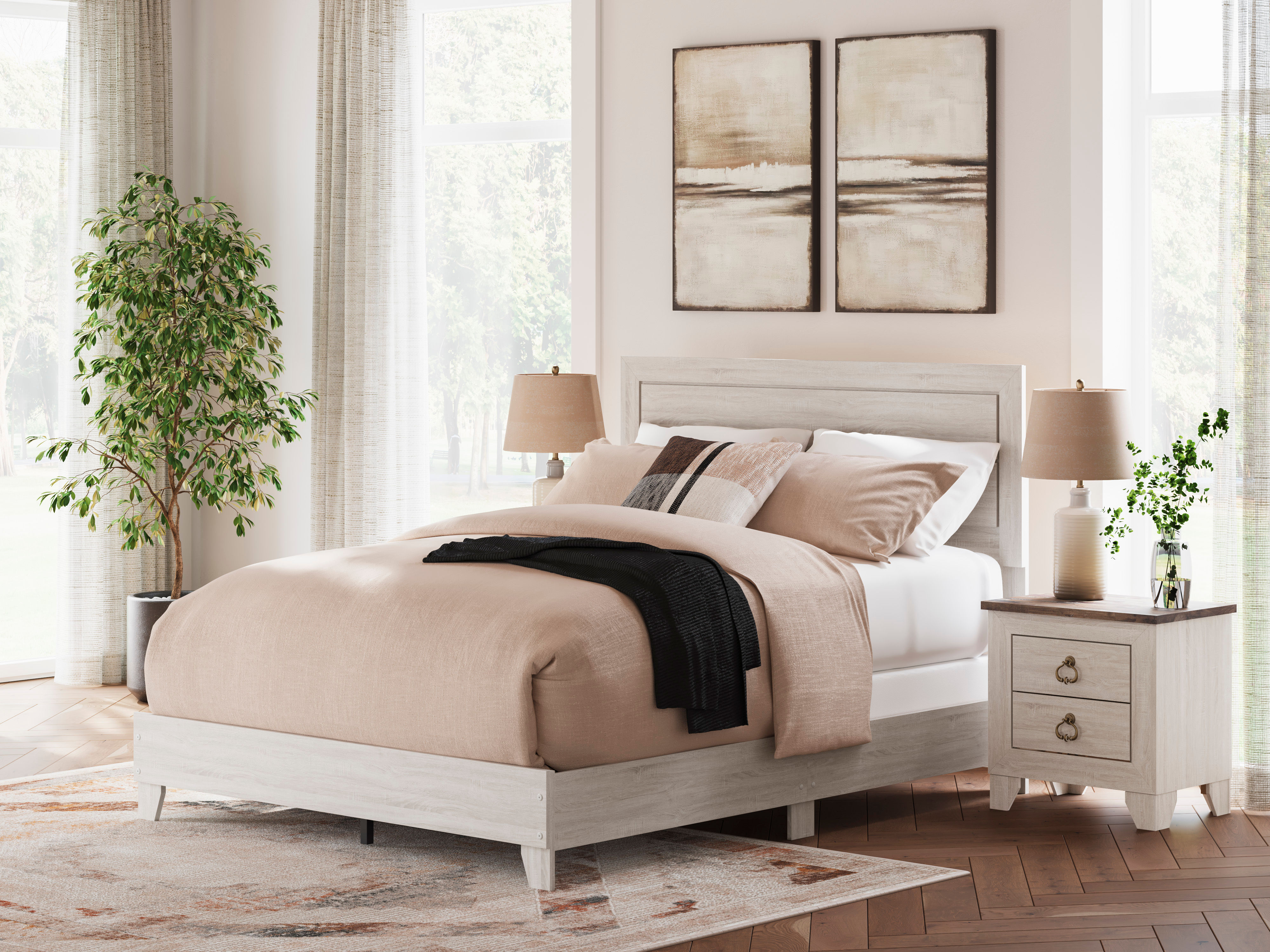 The Laigmeyer queen panel bed is the ultimate statement piece for your shabby chic and farmhouse inspired retreat. A whitewash finish all around the bed is wonderfully easy on the eyes. Paired with the simple and clean-lined design on the headboard, it’s a look that has our minds drifting away to beachy-keen escapes.
