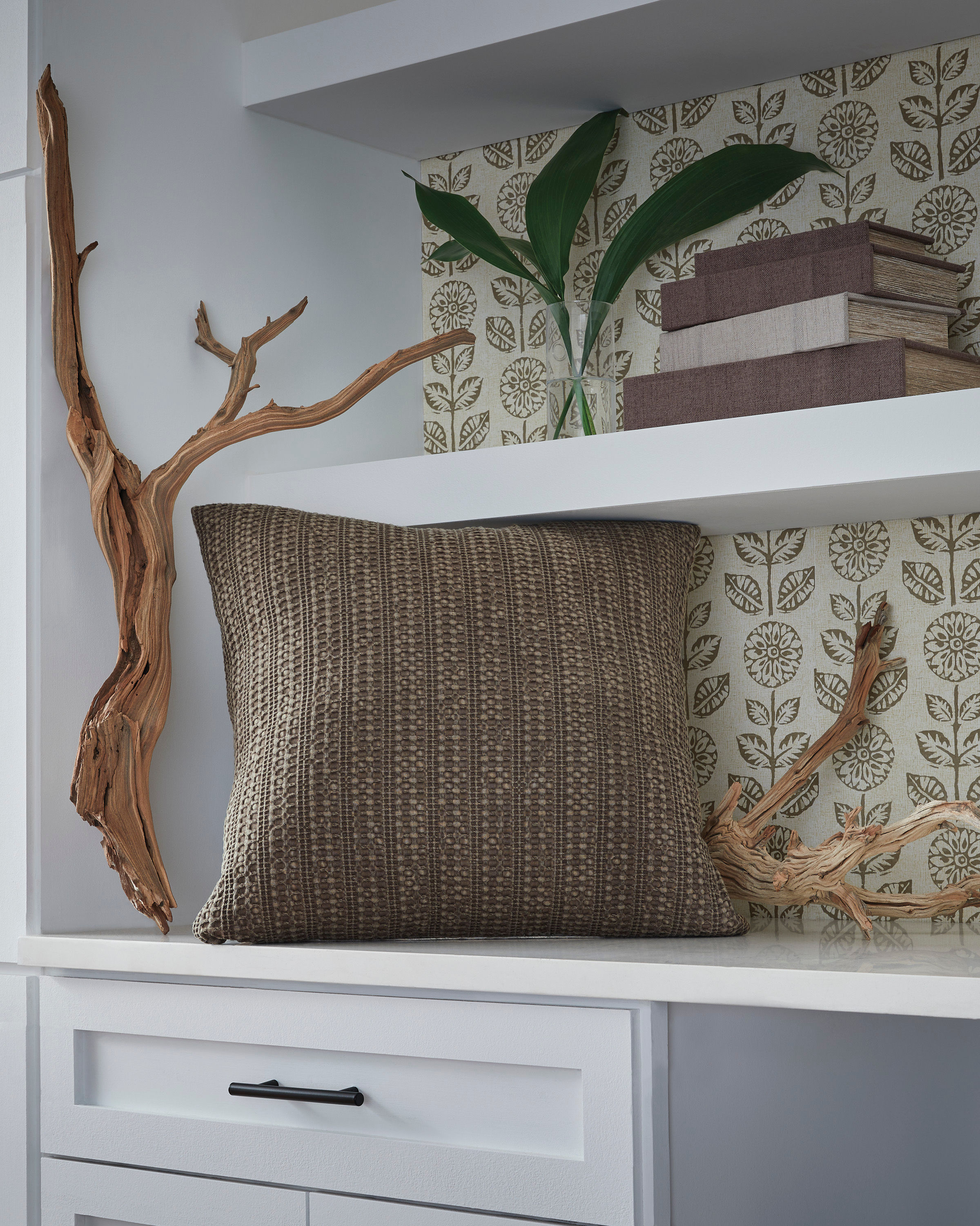 The perfectly neutral accent, the Landcher accent pillow is made with a waffle design in brown on one side and a solid tan side on the other. This contemporary styled pillow is also easy to clean with the machine washable cover.