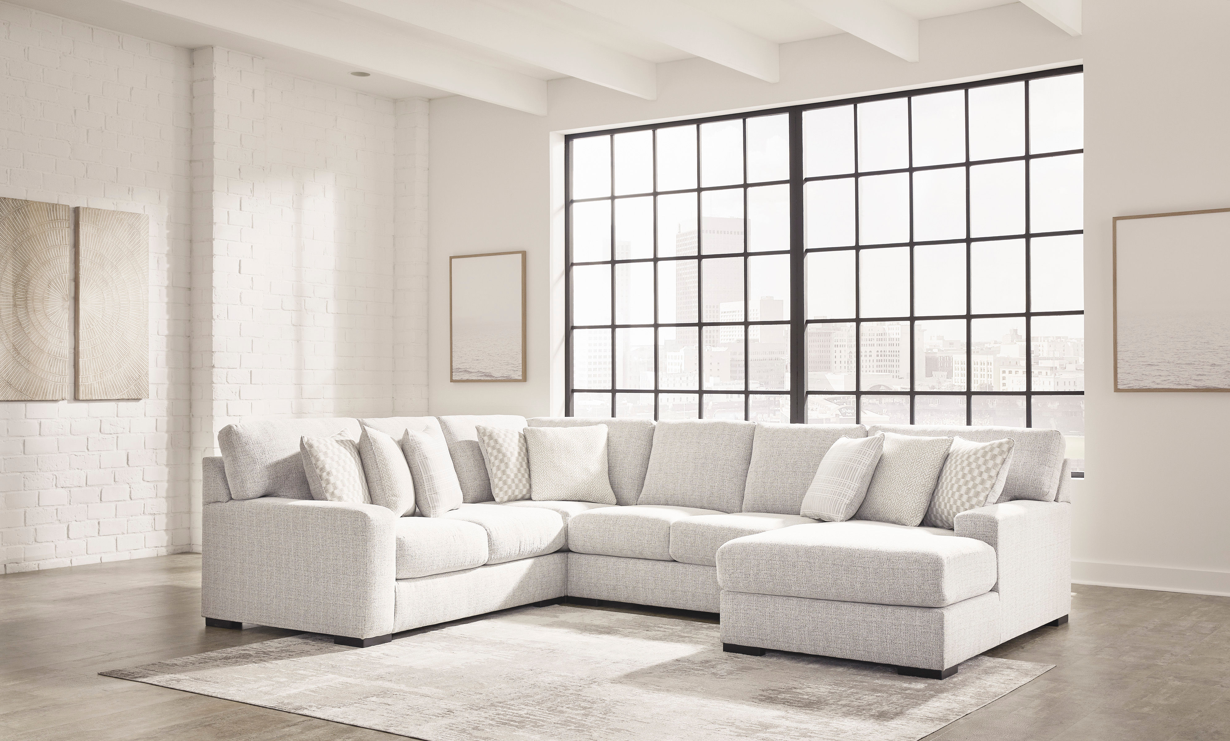 Includes 4 pieces: left-arm facing loveseat, armless loveseat, wedge and right-arm facing corner chaise