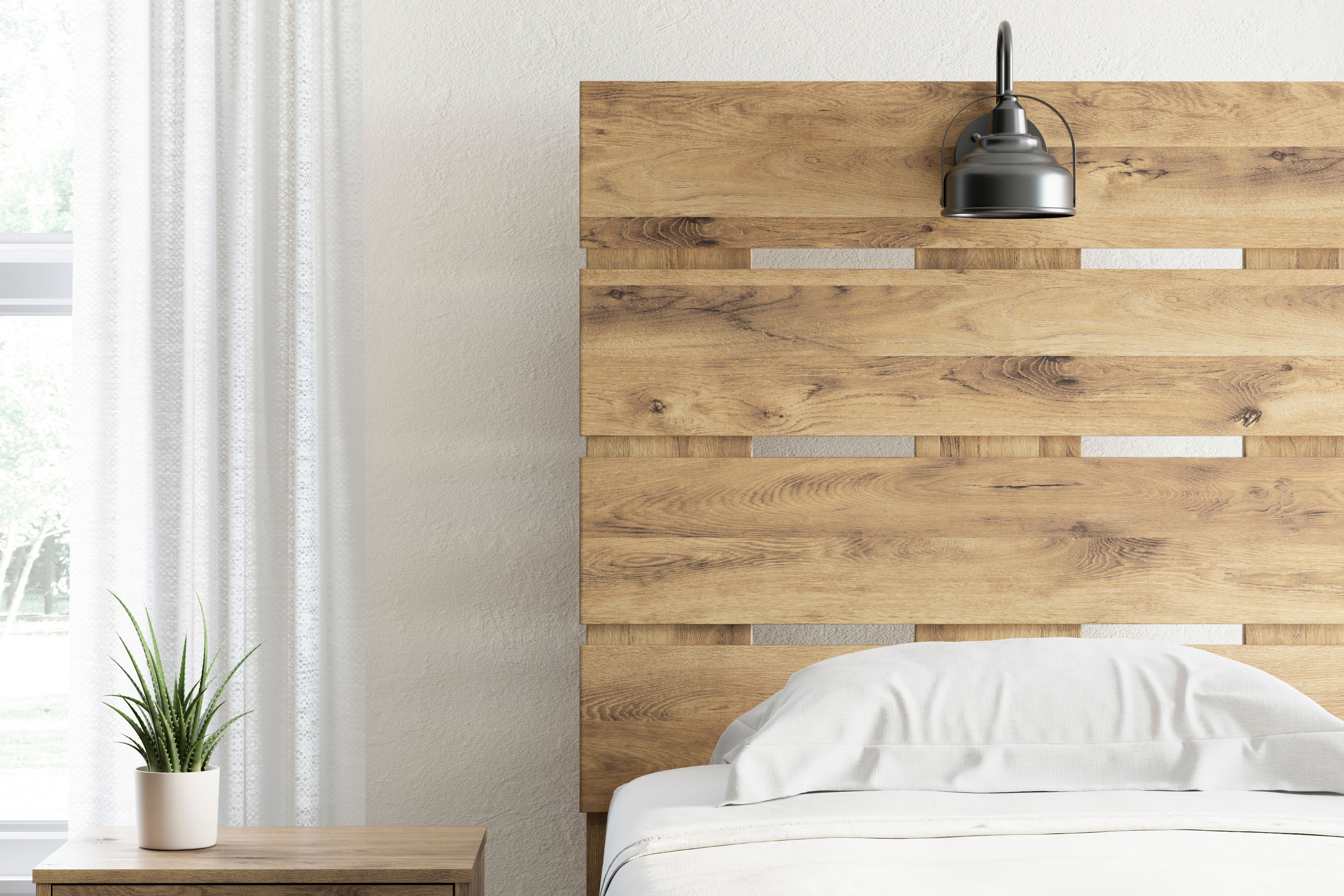 This twin panel headboard is made of engineered wood (MDF/particleboard/plywood) and decorative laminate. Pairs with other items in the series to make a bed kit.