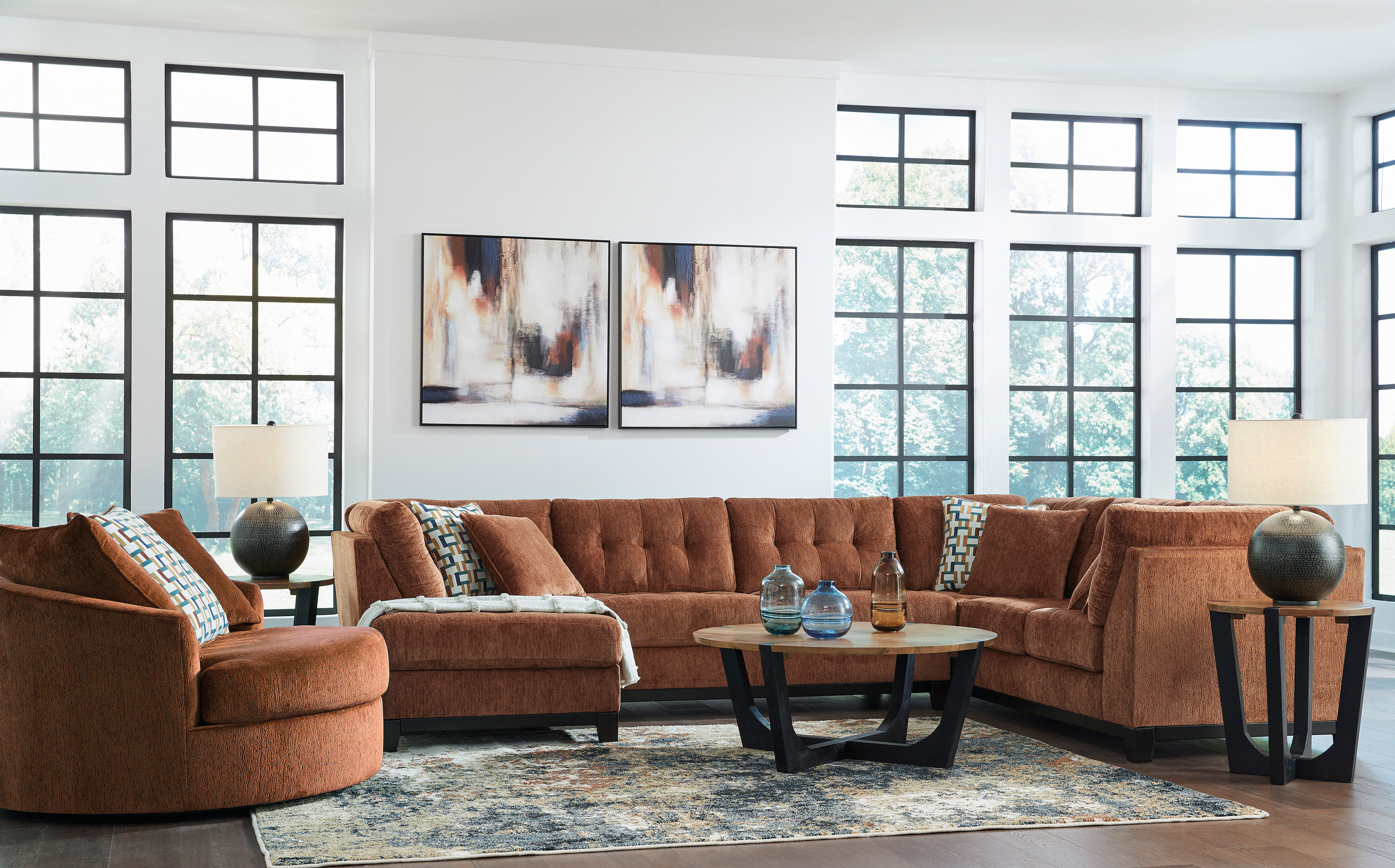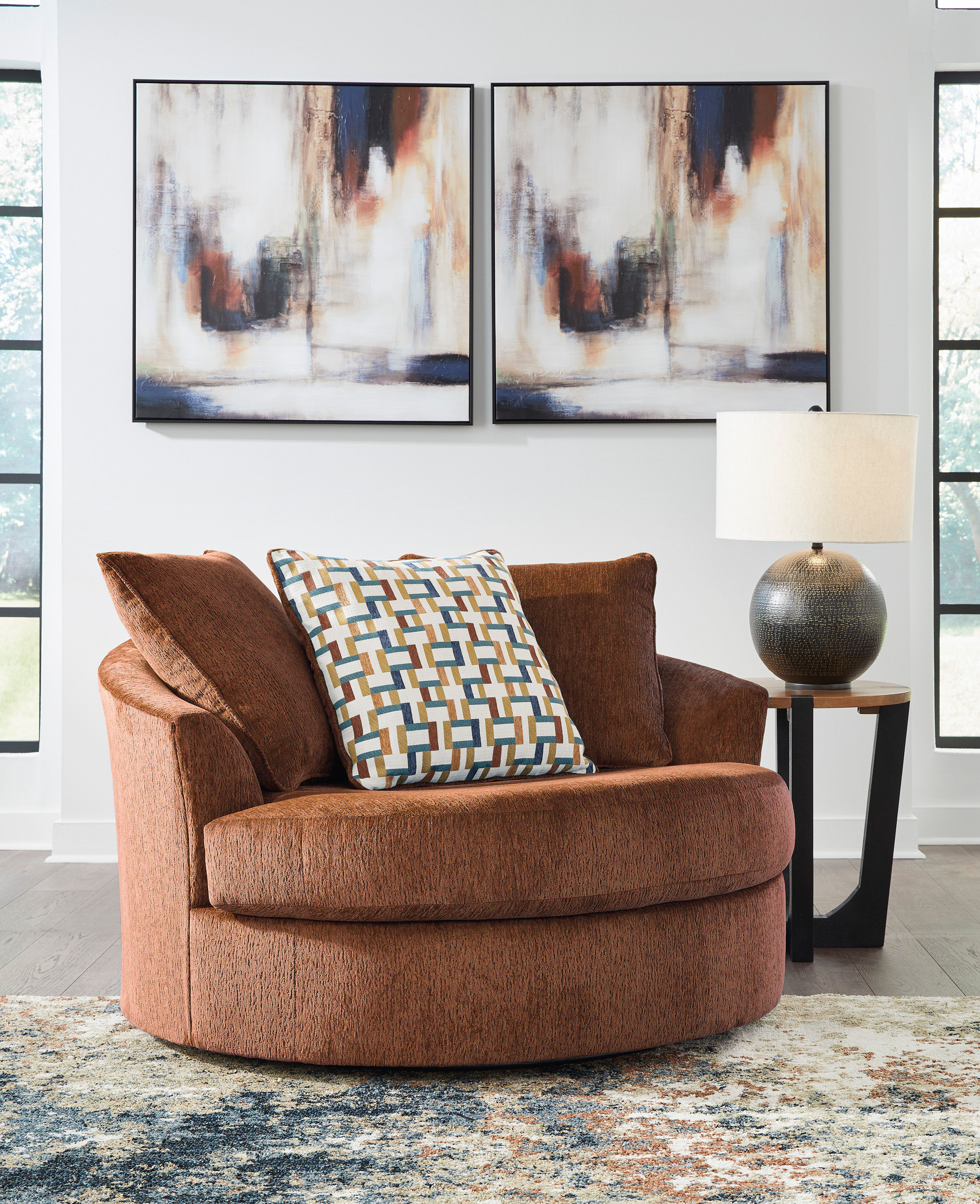 Express your uniquely chic style with the Laylabrook oversized swivel accent chair. Its fresh approach to color creates a vibrant yet refined vibe in your living room that friends and family will love to lounge in. And you can count on classic comfort—the chair’s plush upholstery keeps day-to-day relaxation in mind along with a 360-degree swivel to complete the curated look.