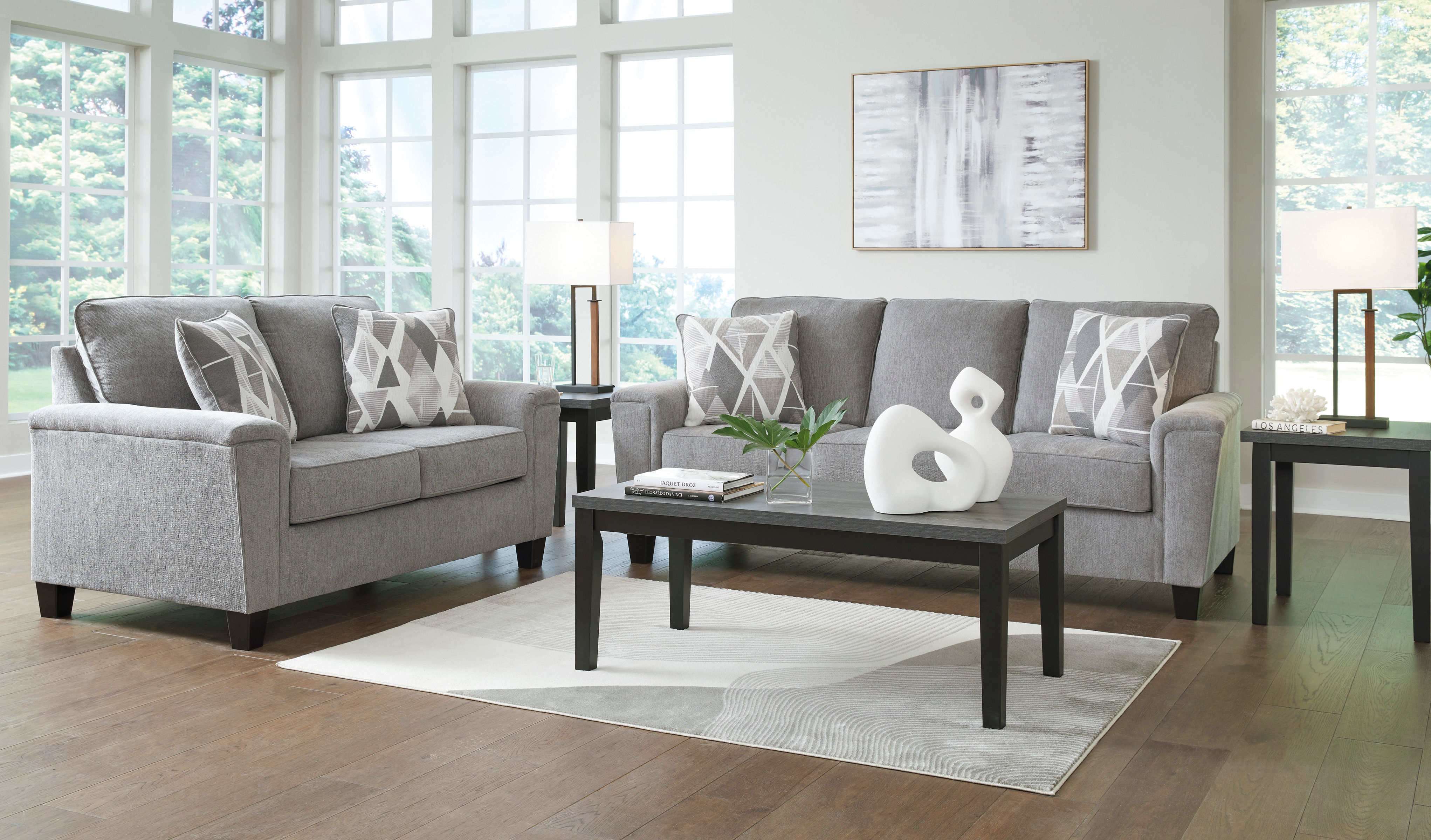 The Leeshan loveseat offers an updated profile and contemporary design. With its stylish design and cozy feel, it's ideal for relaxation and entertainment. Complete with padded arms and welted cushions in a versatile light gray color, this piece seamlessly complements various interiors. And when you thought it couldn't get any better, the accent pillows add a layer of visual dimension, taking it to the next level.