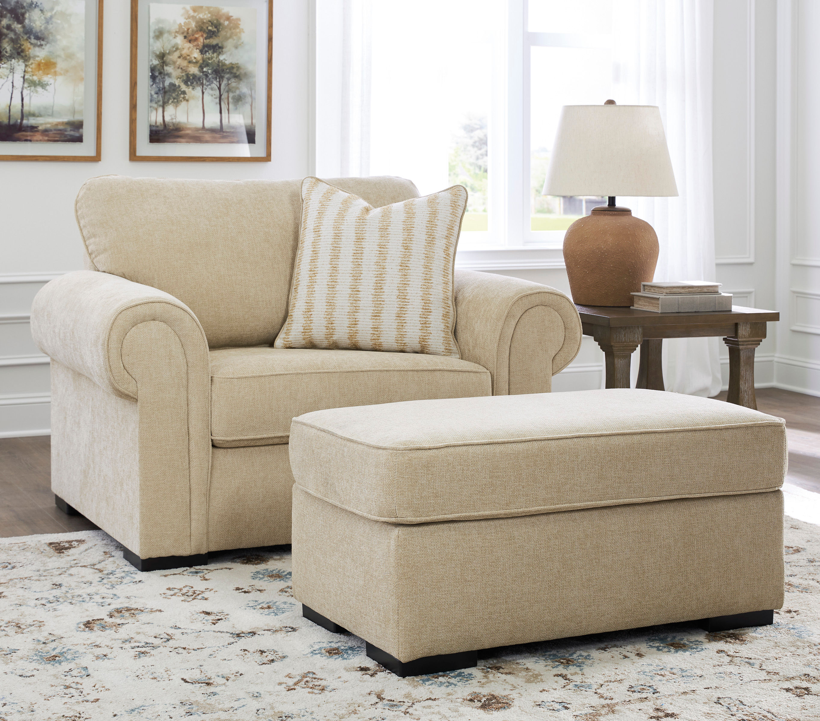 Easy on the eyes and irresistibly comfortable, the Lerason ottoman is covered in luxurious fabric upholstery in a light, neutral hue. This versatile and visually appealing piece cradles your tired feet as you sit back and relax at the end of a long day. This ottoman feels right at home in your modern decor.