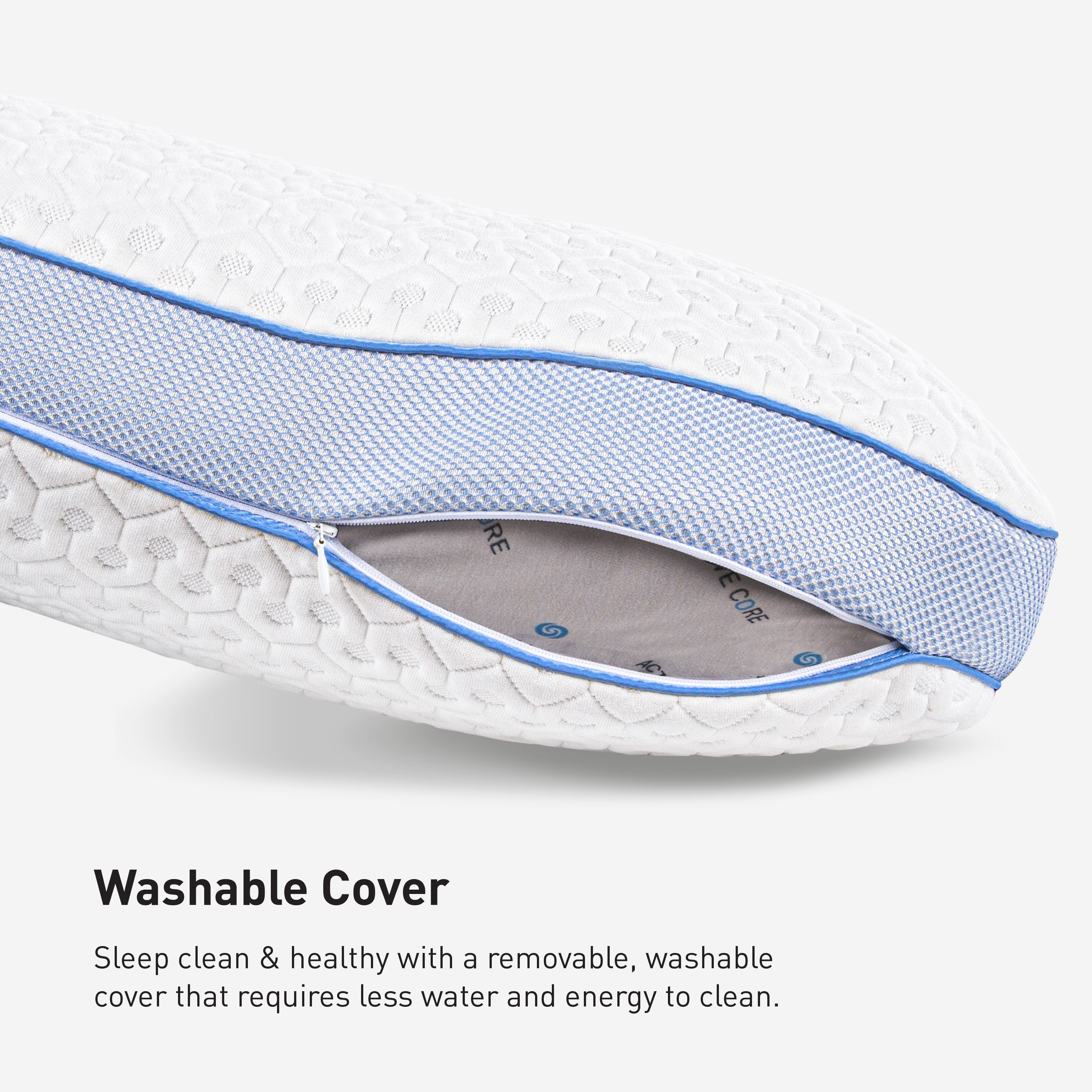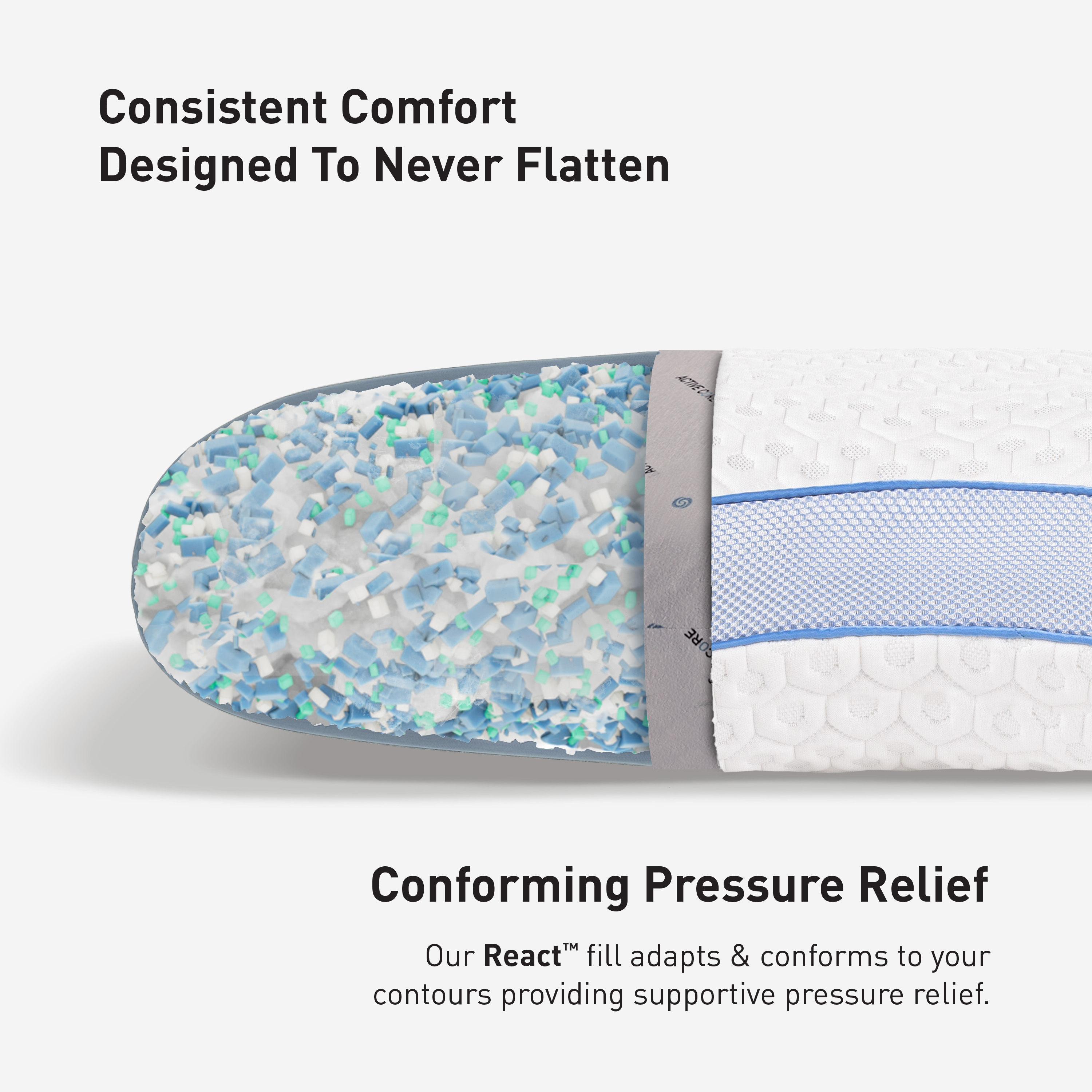 Curved to fit you, the Level 1.0 Performance® pillow series has a crescent-shaped design to cradle your head, neck and shoulders. The latest Dri-Tec® moisture-wicking performance fabric, with a hexagonal pattern and greater loft, facilitates airflow around your sleep environment. The pillow's ergo-molding React® blend core is a combination of foam cubes and silk-feel fibers that creates support and conforms without pushback. Patented Air-X® ventilated side panels enhance air circulation throughout the pillow, moving excess heat away from your head, neck and shoulders. Filter fabric behind the Air-X® panels helps prevent allergens and dander from entering the pillow core.