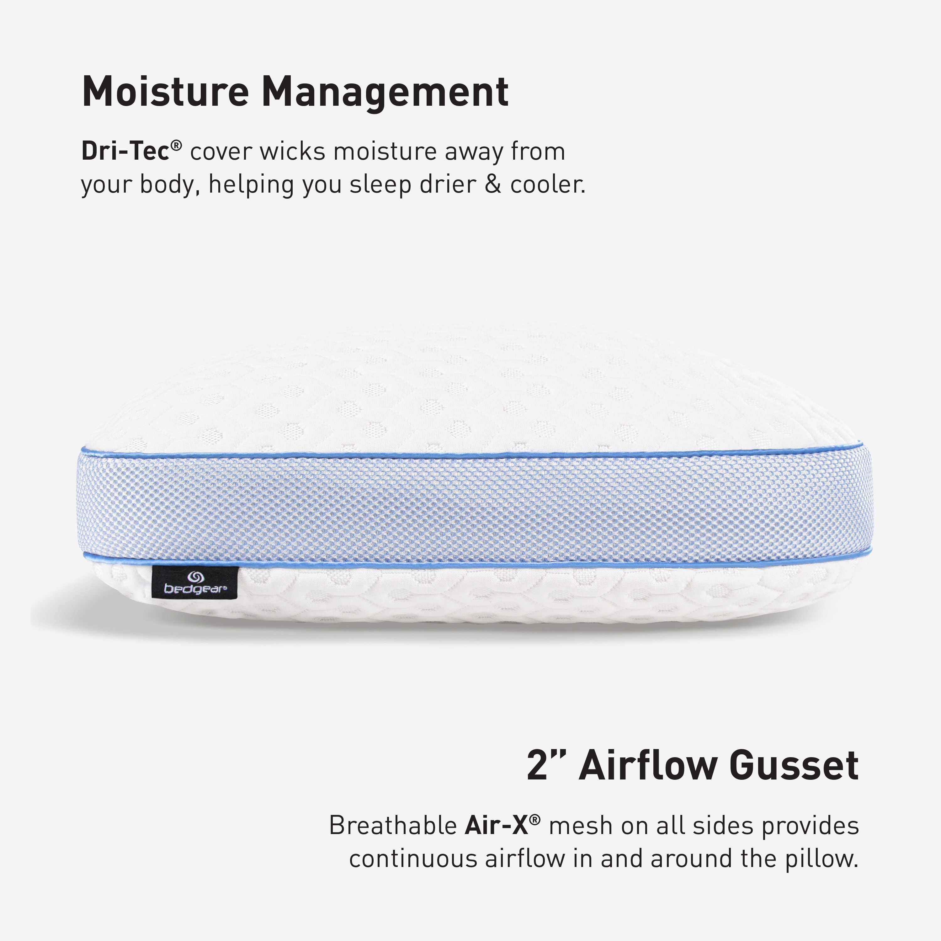 Filter fabric behind the Air-X® gussets prevents allergens and dander from entering the pillow core