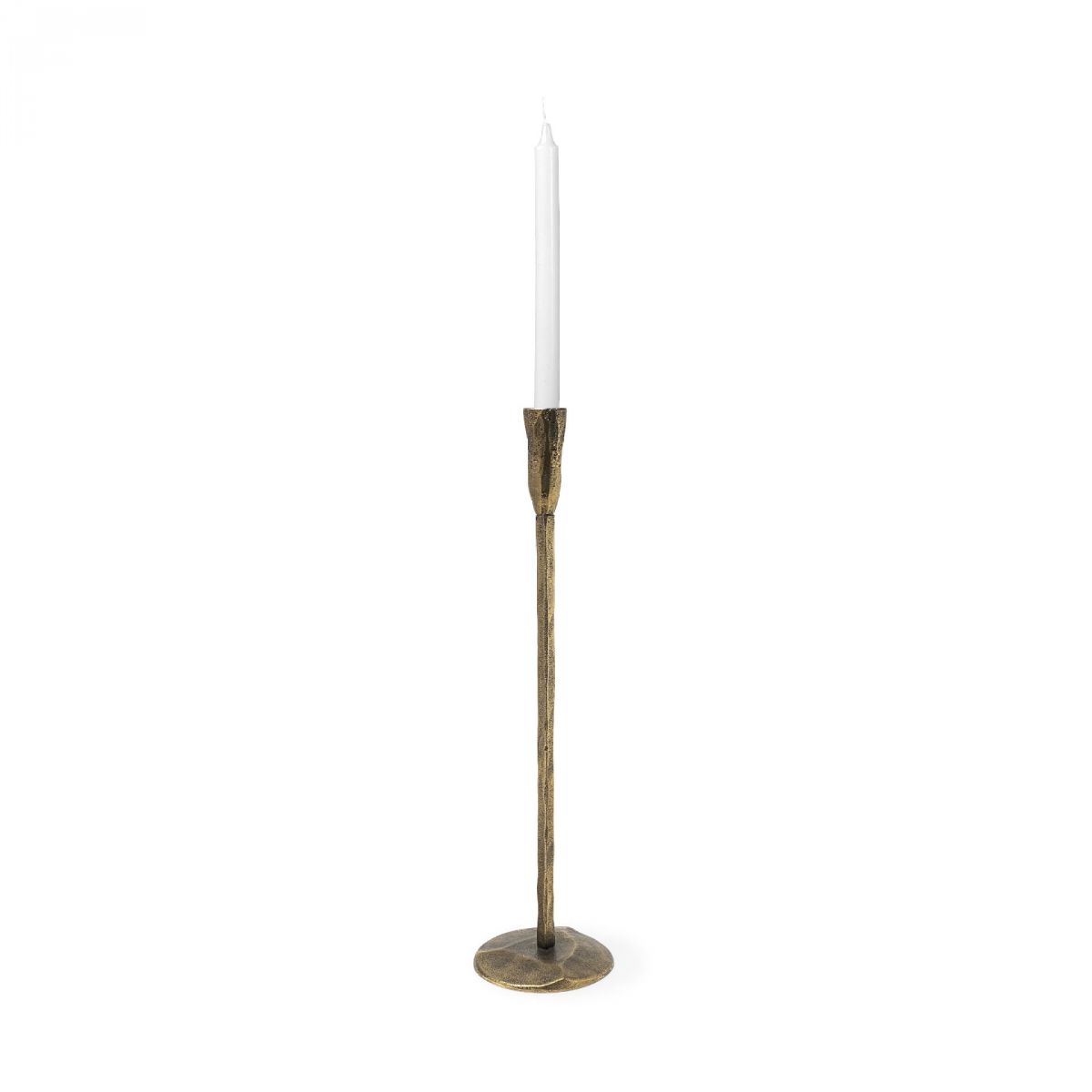 Levit is a large antique gold table candle holder measuring 5.0"L x 5.0"W x 20.0"H.