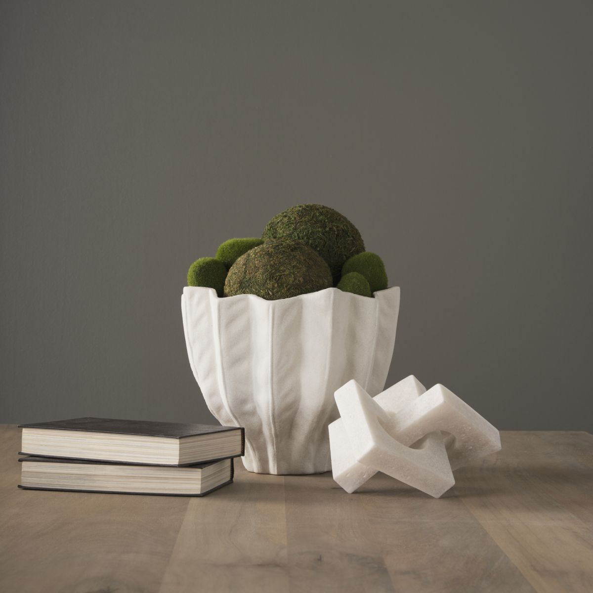 Small Linx Decorative Object is a sculptural, cream granite resin accessory perfect for creating texture and visual interest.