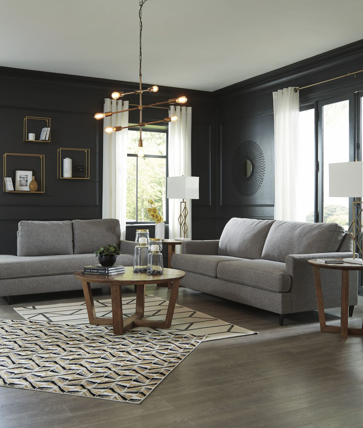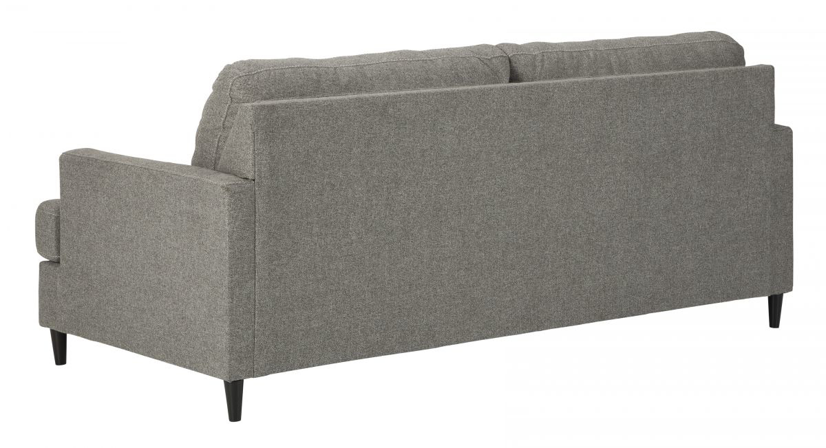 Mixing mid-century inspiration with modern attitude, this sofa is as retro chic as it is fashion forward. Loaded with multi-tonal interest, the granite gray upholstery is the essence of earthy elegance. Design elements include 2-over-2 cushion styling, t-cushions wrapping around slim track arms and tapered accent legs that are right on point.
