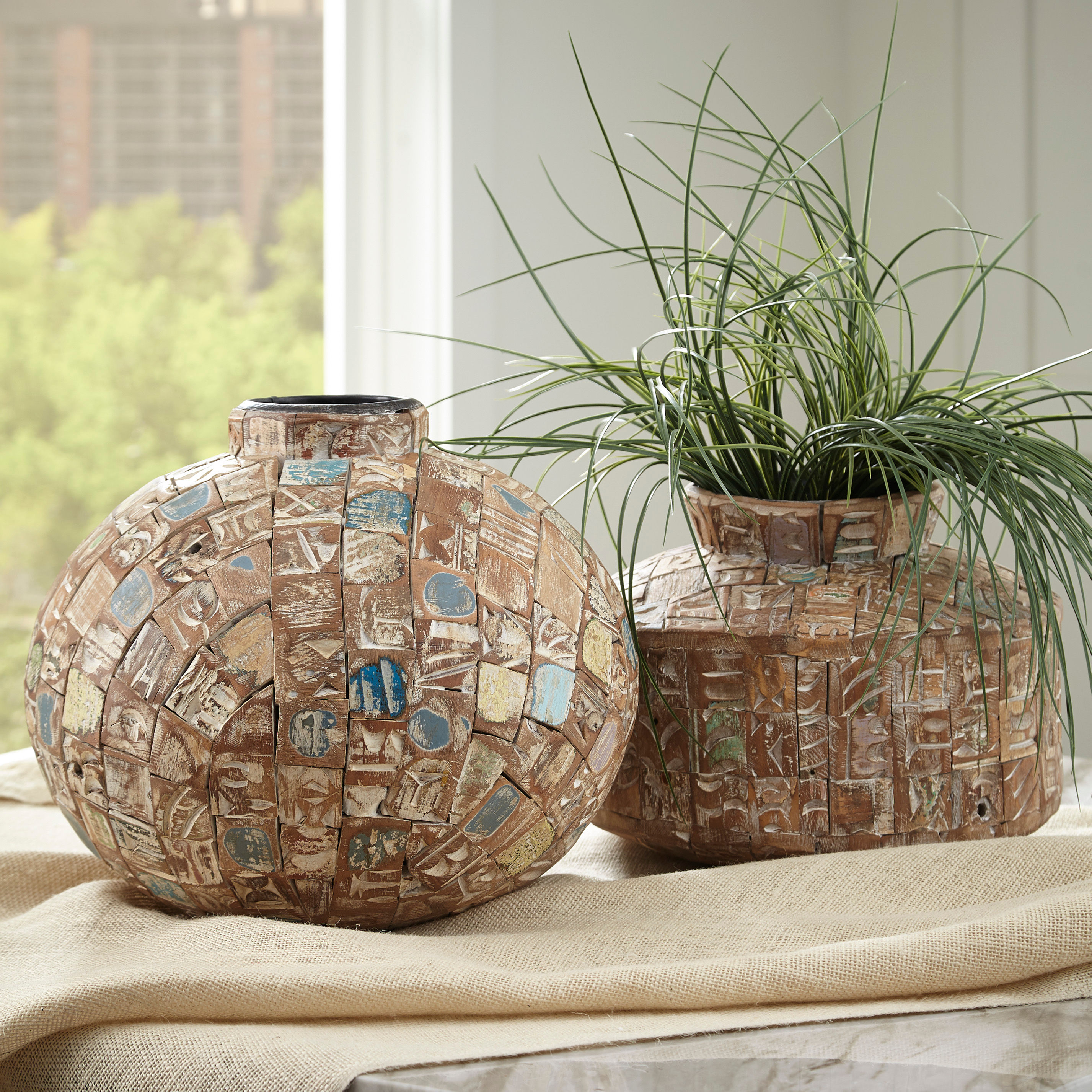 Bring a hint of natural beauty to your decor with the Meltland vase. Mesmerizing with its multi-hued finish, this piece's reclaimed wood construction has a well-loved look that graces your space with a weathered and warm appeal.