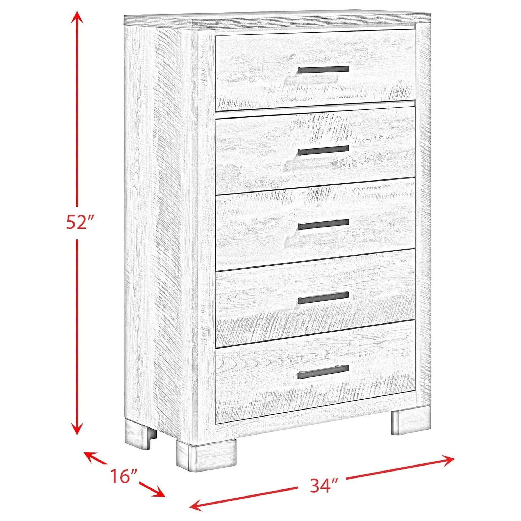 This chic chest of drawers is the perfect coastal piece for your bedroom. It has textured wood with a gray finish, a dark top, and black handles on the drawers. This Millers Cover Dresser chest of drawers has 5 drawers that will give you plenty of space to store your wardrobe.