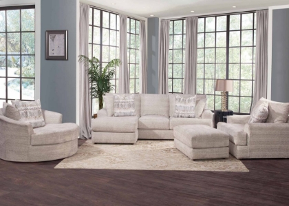 The 945 Nash collection offers a sofa with a reversible chaise ottoman, chair and a half and matching ottoman, and a 360º swivel lounger. The Nash is upholstered in a soft, light fabric with complimenting accent throw pillows. Meticulously crafted, the Nash provides unsurpassed comfort without sacrificing style.