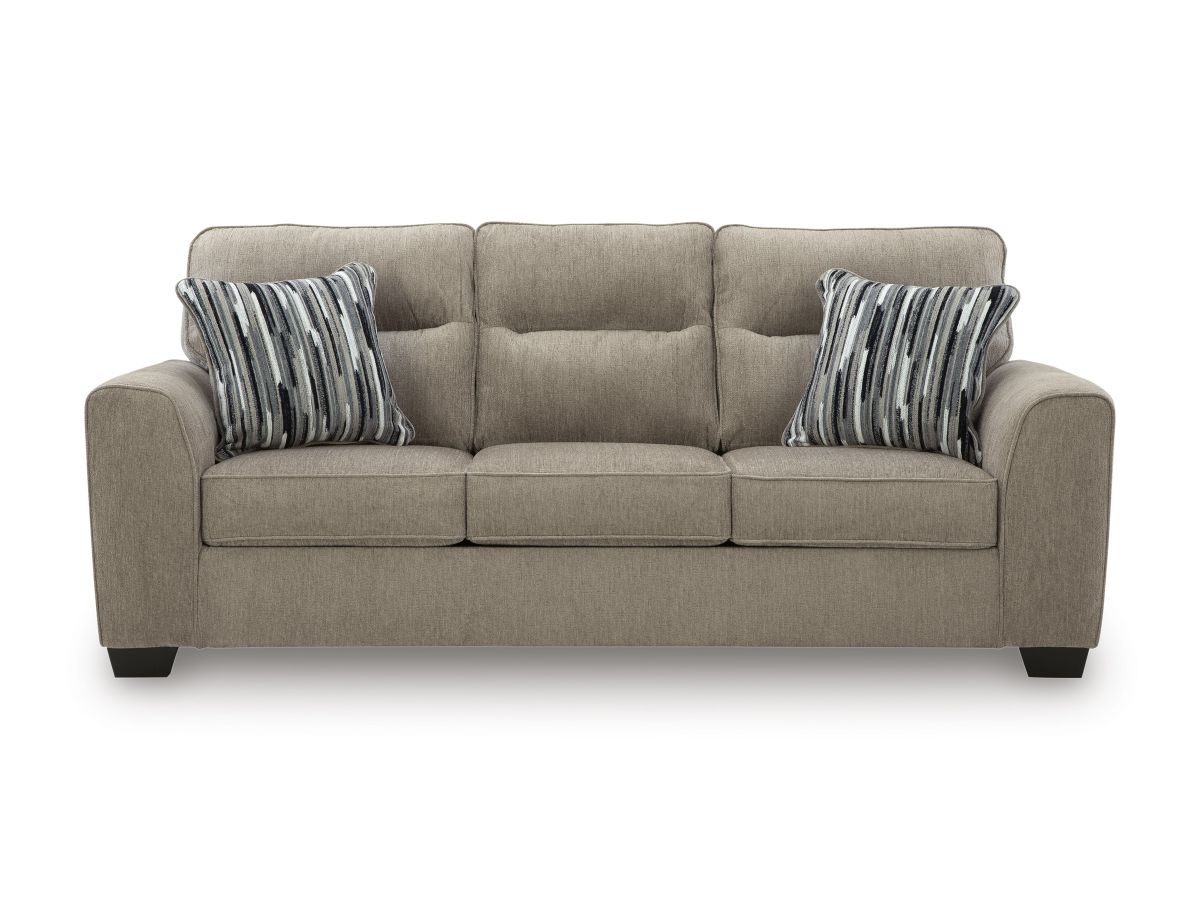 Strike a balance between the indulgent comfort you crave and the contemporary aesthetic you long for. The fabulously soft, mocha-colored upholstery of this sofa takes neutrals to new heights. Plus there's plenty of room to spread out and relax solo or with your bestie. Geometric-patterned accent pillows perfect the richly on-trend aesthetic.