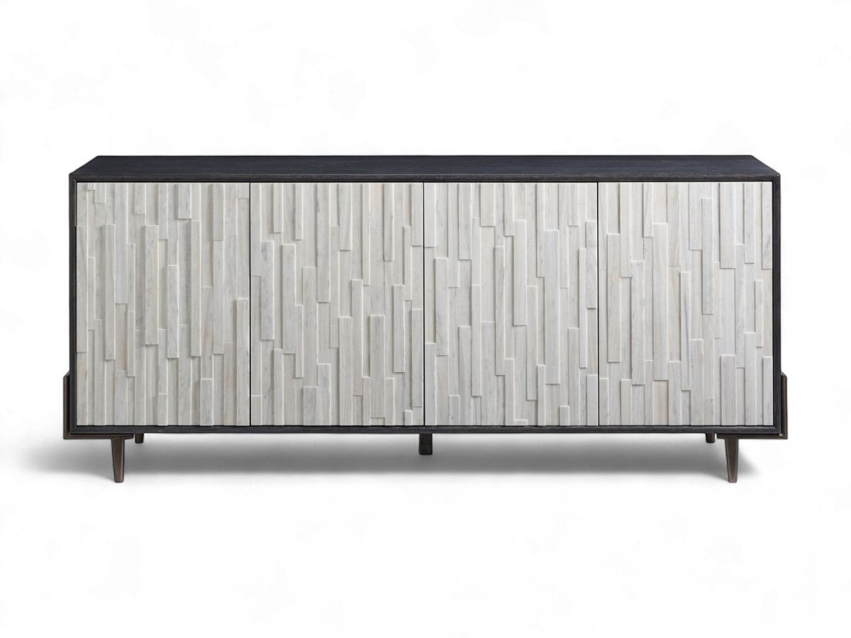 The Oslo Entertainment Console is crafted with a classic high contrast composition yet infused with a modern twist, featuring gorgeous texturized doors atop sleek tapered legs.