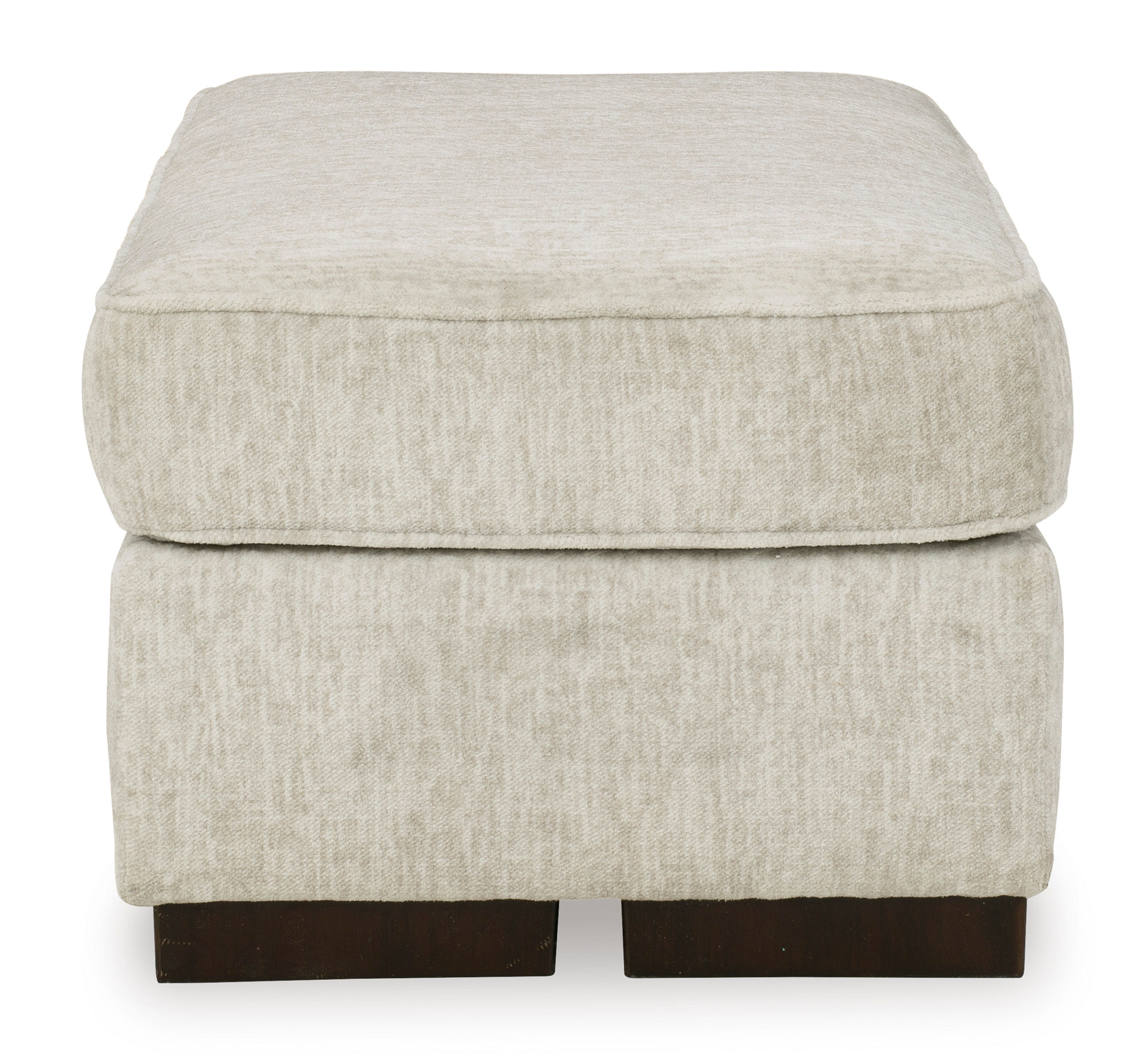 Decidedly modern with a sense of relaxed ease, the Alesandra ottoman looks at home in so many different places and spaces. Sporting a subtle chevron texture, the parchment-tone upholstery takes neutral to new heights. Providing a highly distinctive look: low-to-the-floor block feet in a warm wood-tone finish.