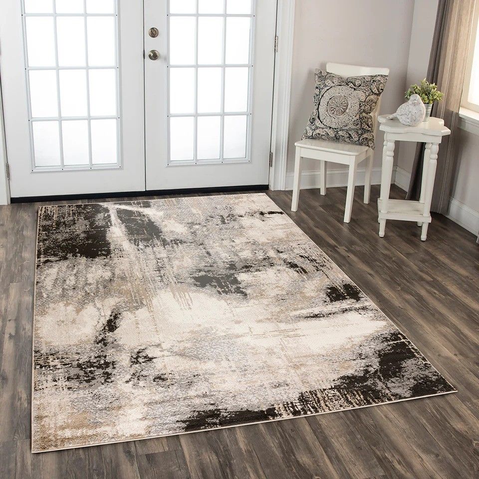 A contemporary style with a modern and abstract design, the Palace collection features on trend coloring and unique designs. This rug has a neutral color palette with shades of gray and beige.