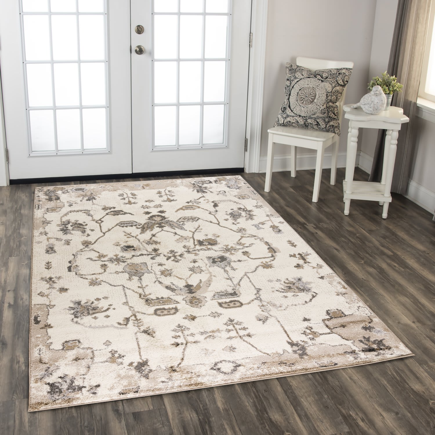 A contemporary style with a modern and abstract design, the Palace collection features on trend coloring and unique designs. This rug has a neutral color palette with shades of gray and beige.