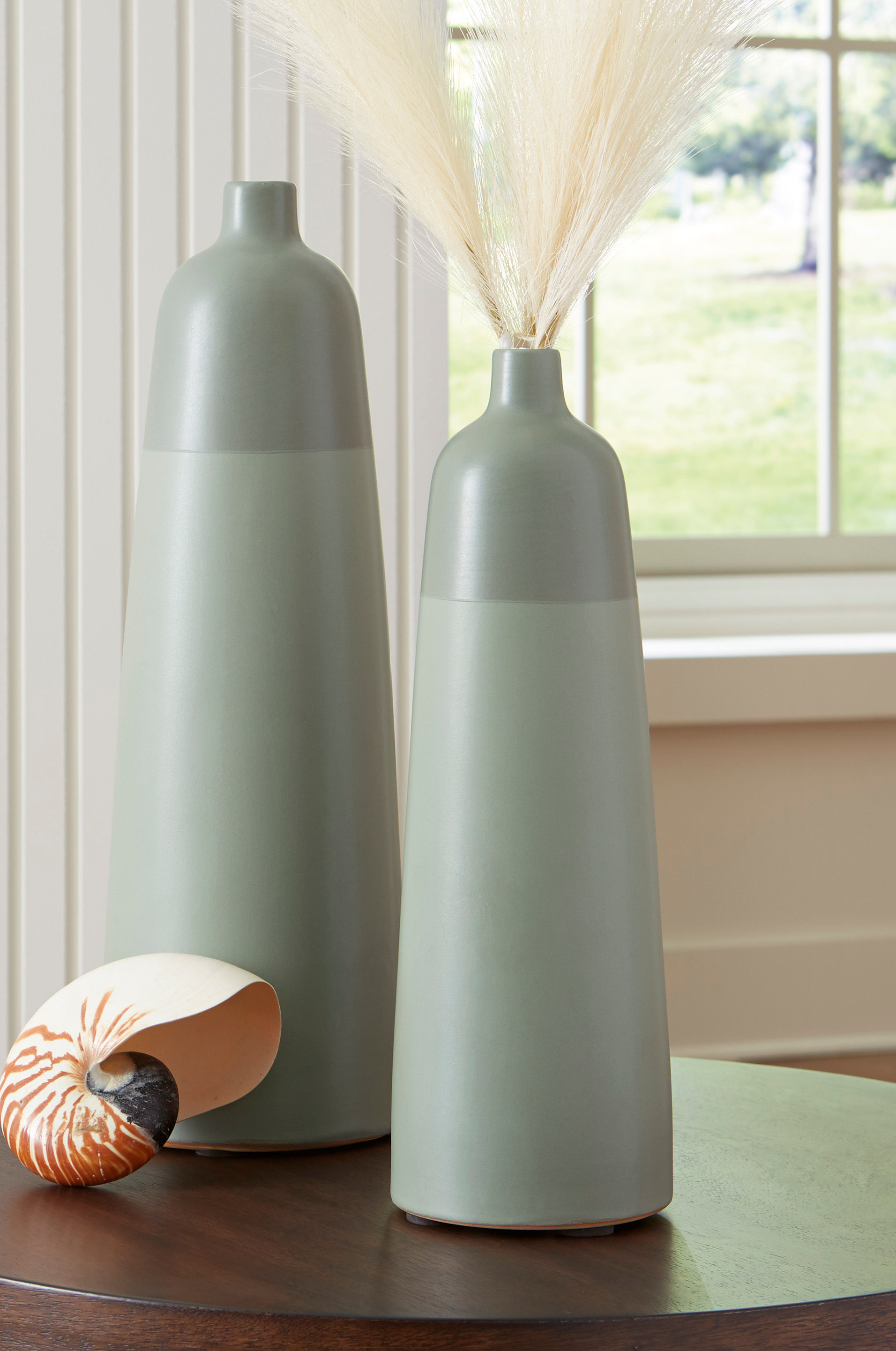 Two-tone sage green glazed finish