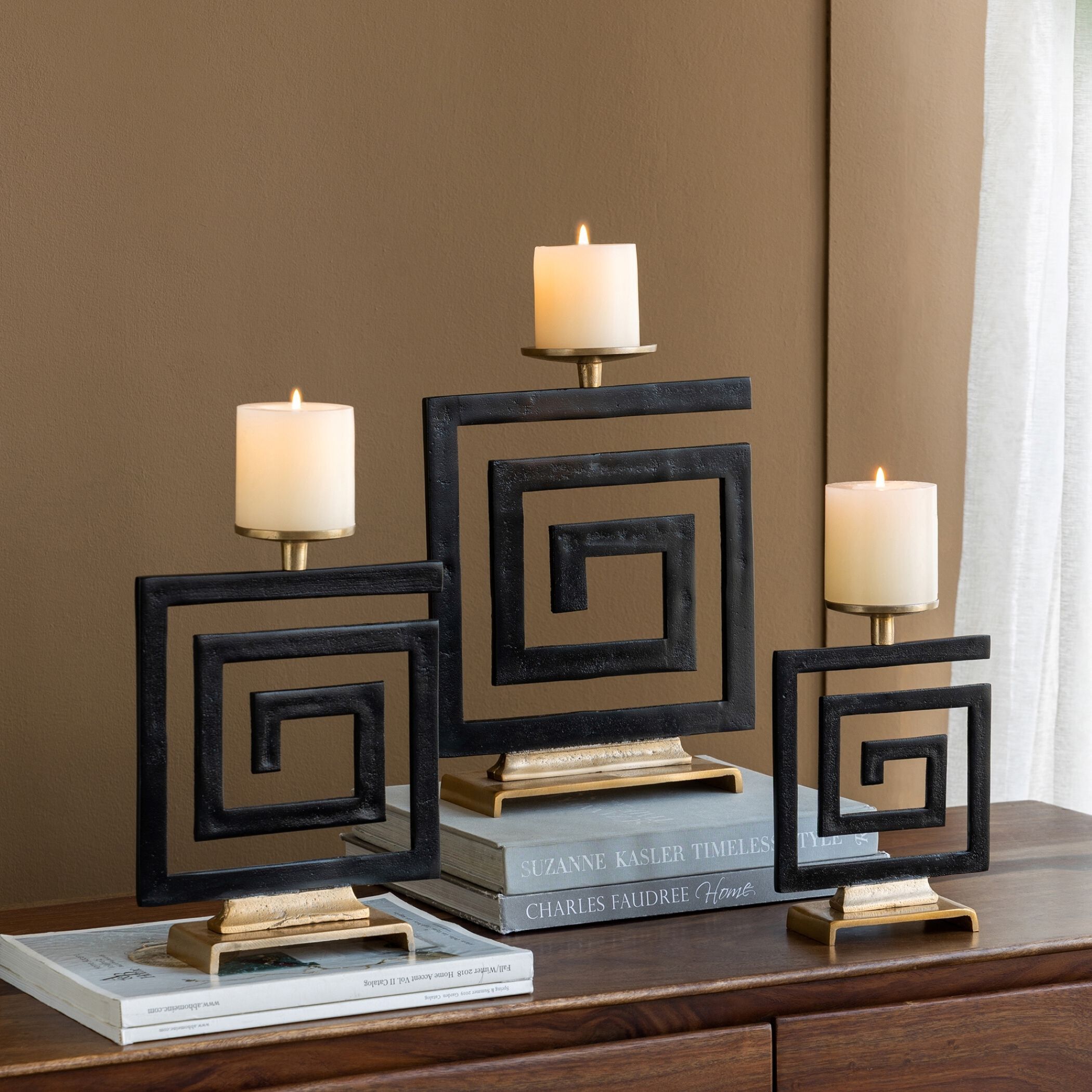 Made with a unique design and shape, the Pillar Candle Holders set of three is made with a black and gold finish, embracing the modern style. The body of these candle holders feature a sprial shape that is sure to catch your guests' attention.