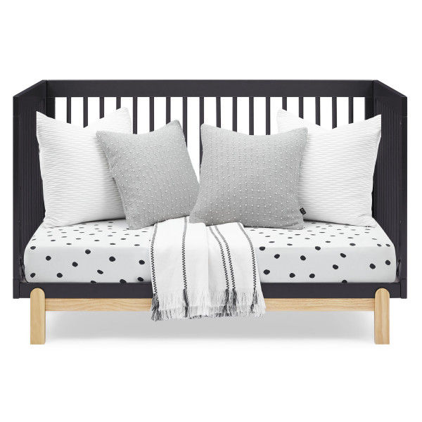 The stylish two-toned Poppy 4-in-1 Convertible Baby Crib by Delta Children will be the centerpiece of your little one’s bedroom for years to come. It’s a timeless, modern crib that features an adjustable height mattress, plus it converts into a toddler bed, daybed and sofa as your child grows (Daybed/Sofa Rail included; Toddler Guardrail #W100725 sold separately). The warm, natural wood tone of this crib’s base and feet is paired with contrasting round spindles to create a modern, sleek style that adapts to all your child’s sleep needs from baby to big-kid. To complete your nursery, pair the Poppy 4-in-1 Convertible Crib with the Poppy 3 Drawer Dresser with Cubbies by Delta Children. Crib is available in Bianca White with Natural, Grey with Natural and Midnight Grey with Natural. Crib mattress not included.