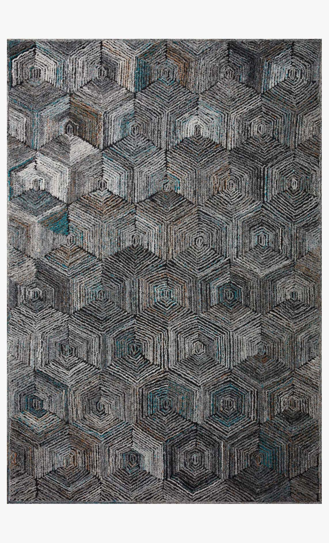 Featuring tone on tone geometric patterns, the Prescott Collection is hooked of polyester, wool and viscose. Crafted in India, Prescott's high-low pile creates dimension and offers a unique textural focal point to any room.