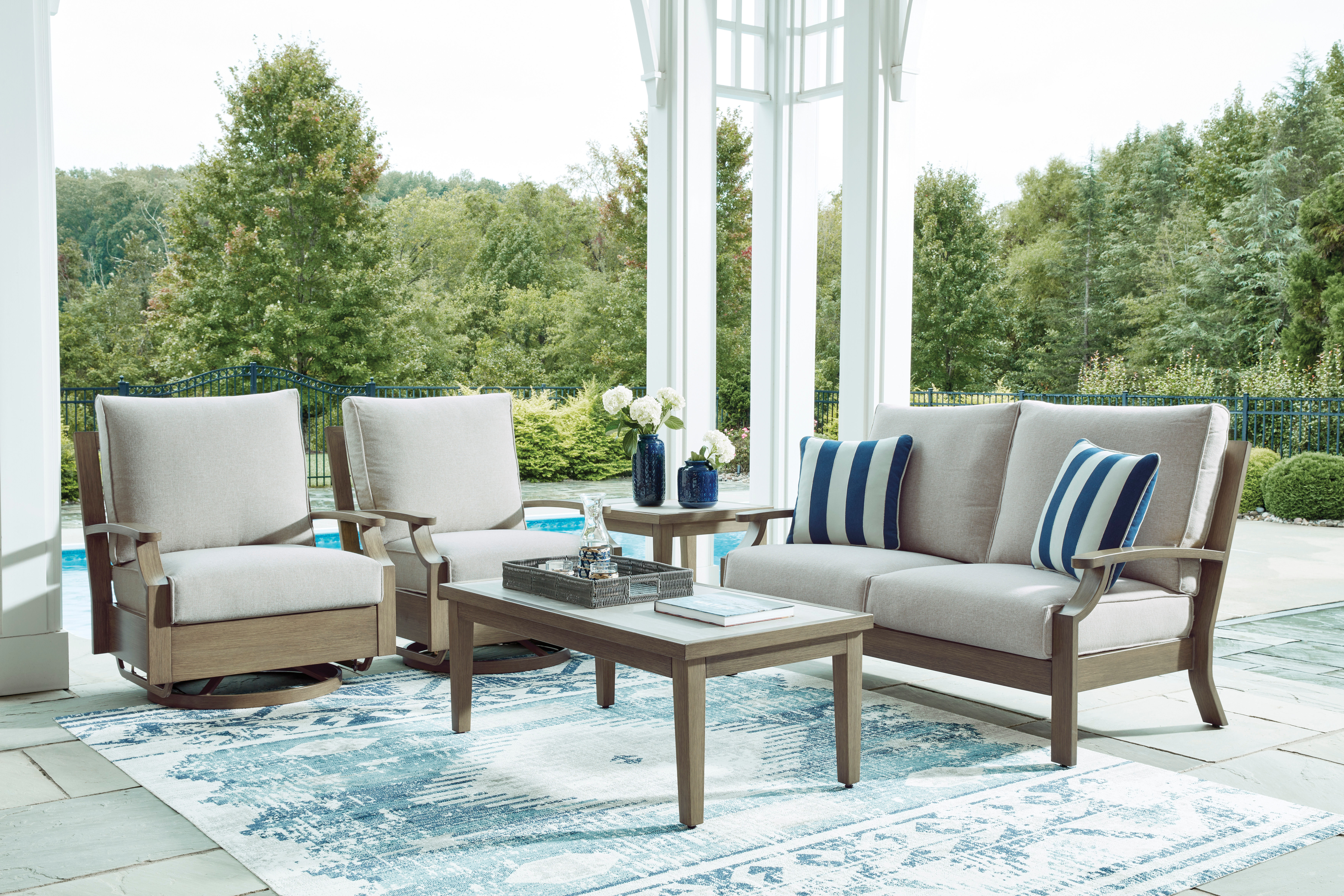 Experience the perfect combination of durability and style with this outdoor coffee table. An aluminum frame with a wood-look finish maintains a sleek, contemporary aesthetic, while the sintered stone tabletop adds an element of natural elegance. This delightful companion to your outdoor seating creates an oasis where comfort and beauty thrive.
