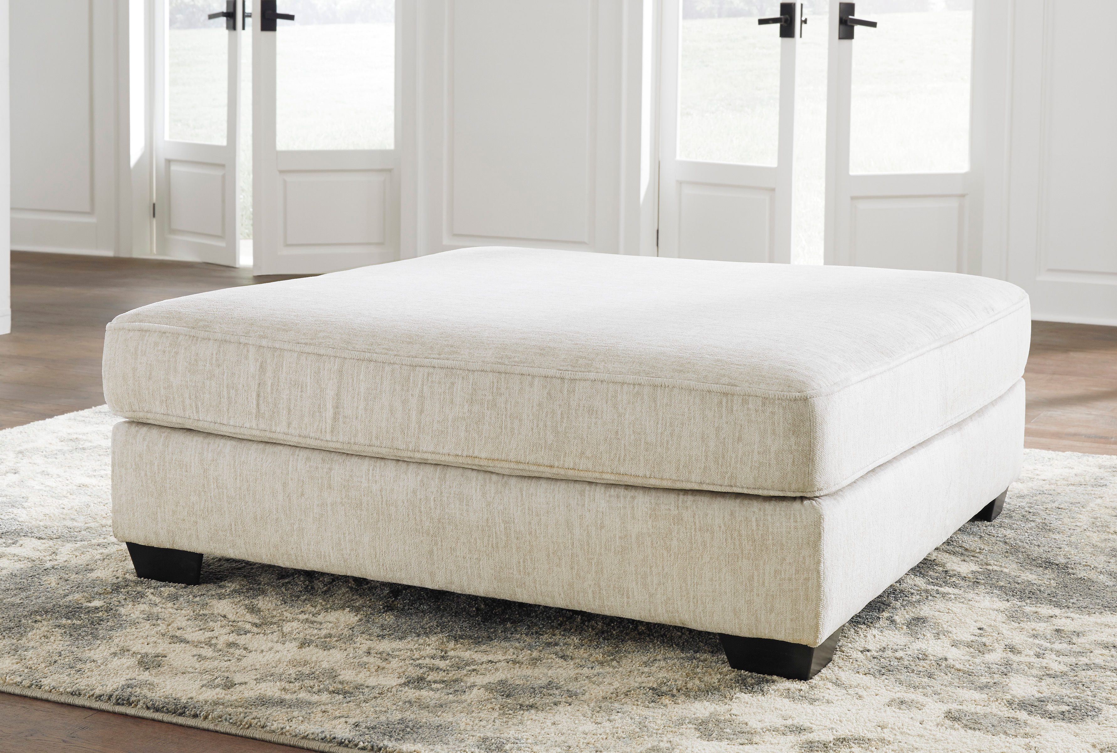 Make room for big-time comfort and style with the Rawcliffe oversized ottoman. Designed to multitask as a footrest and casually cool coffee table, this firmly cushioned square ottoman is covered in a decadently soft chenille microfiber that’s love at first touch.