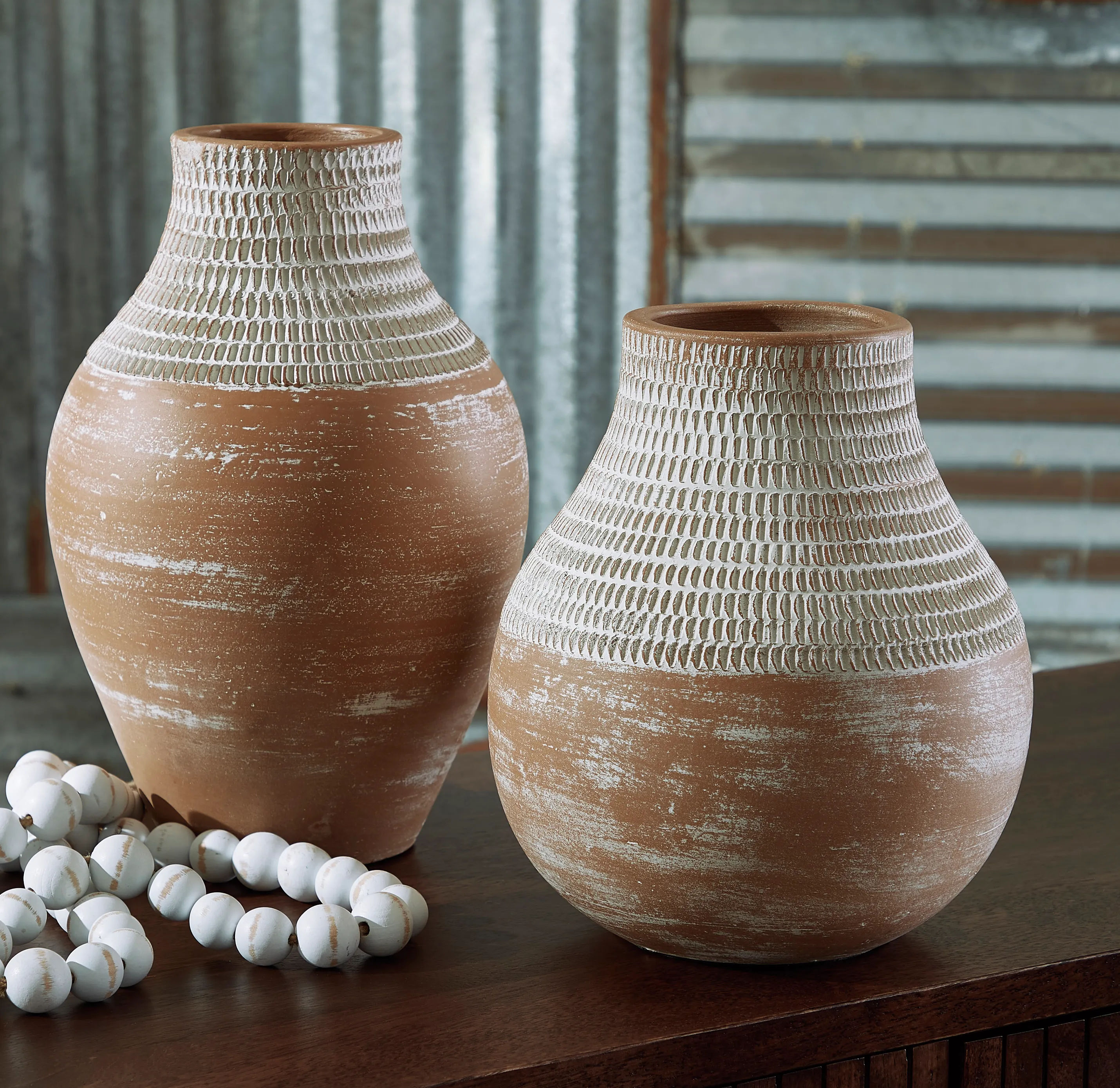 Casual, earthy design comes to life with the Reclove terra cotta vase. A distressed white patina is the perfect finish for this piece, giving it an understated presence to stand alone or in pairs on a shelf or display space.