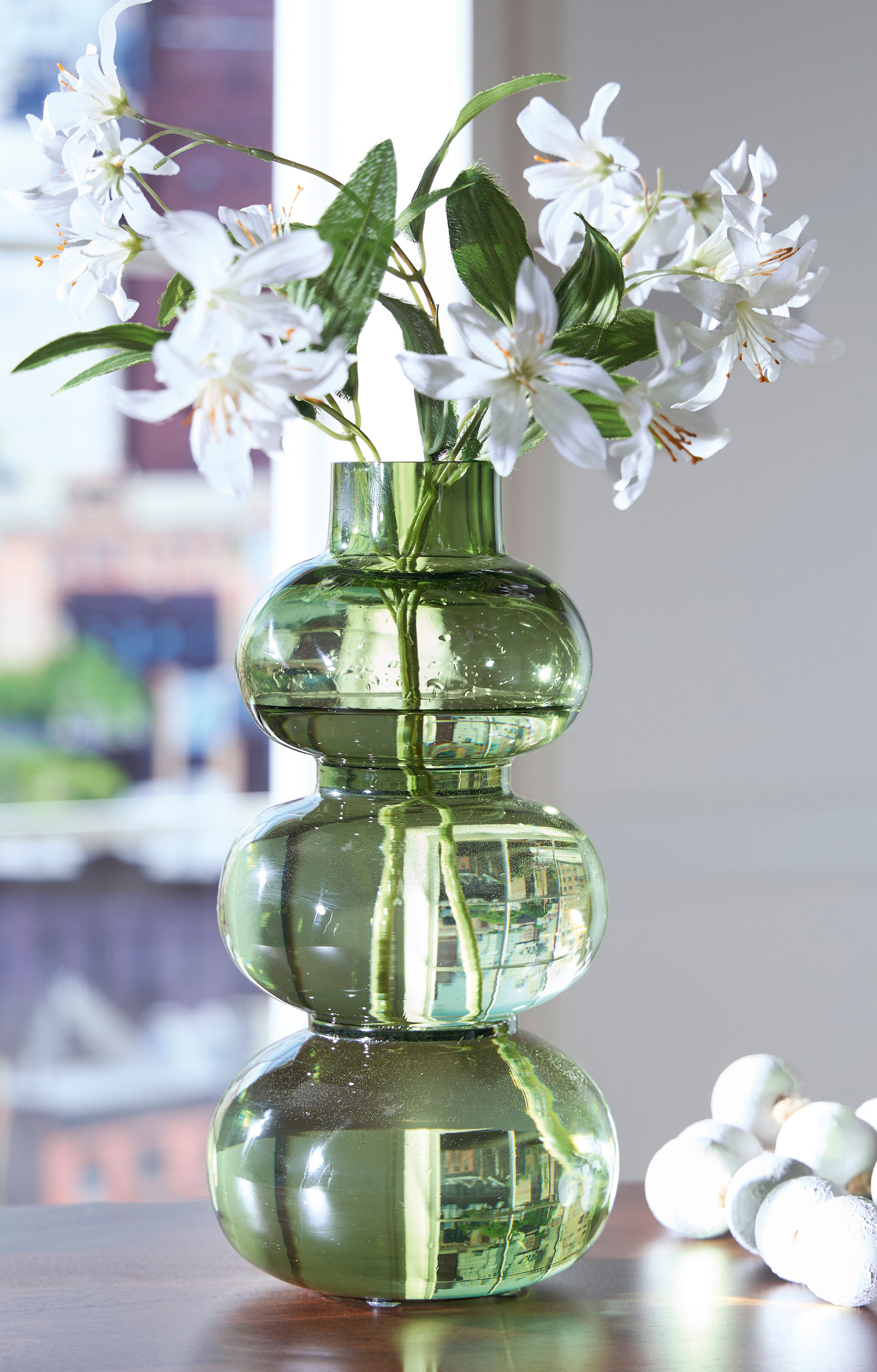 Give your living space a modern vibe. This vase is beautifully crafted from blown glass, with rounded organic shapes that provide plenty of visual interest. Add a single dried bloom or faux greenery to accentuate its simple splendor.