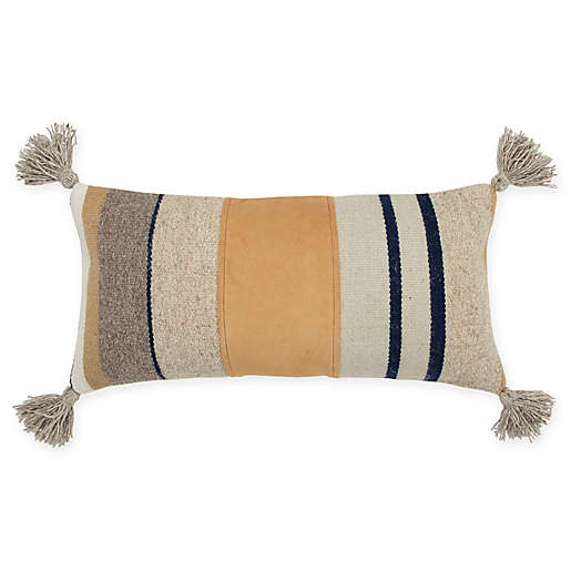 Discover the striped pattern of this Rizzy Home accent pillow in shades of blue and orange, perfect for any contemporary interiors. The tassles on each of the four corners of this pillow will draw attention and add a boho-chic touch.