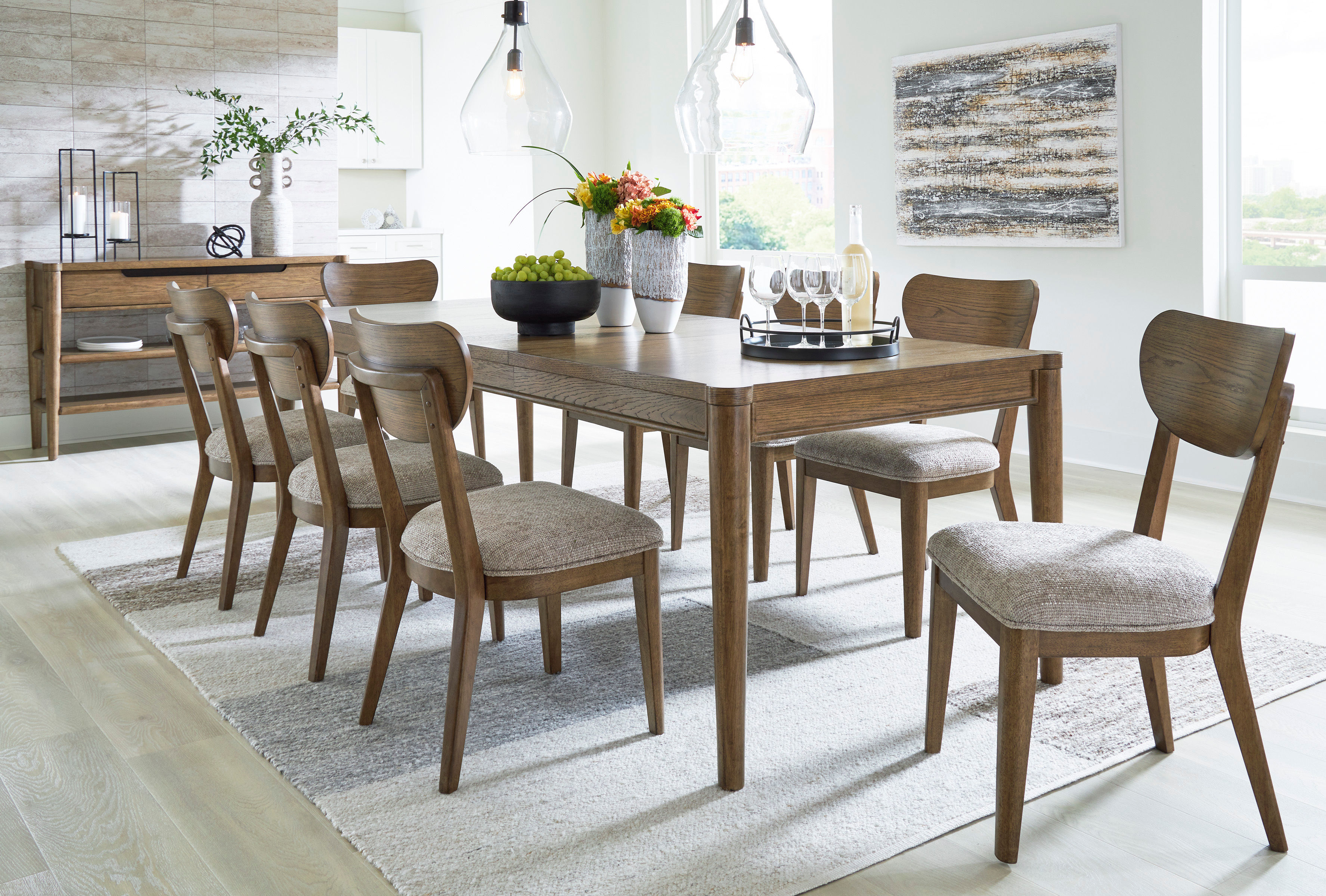 Give your mid-century modern dining room that finishing touch. The Roanhowe dining package offers up simple sophistication with a modern silhouette. Picture yourself hosting guests with this gorgeous set—and bringing a little minimalism with big character to your home.