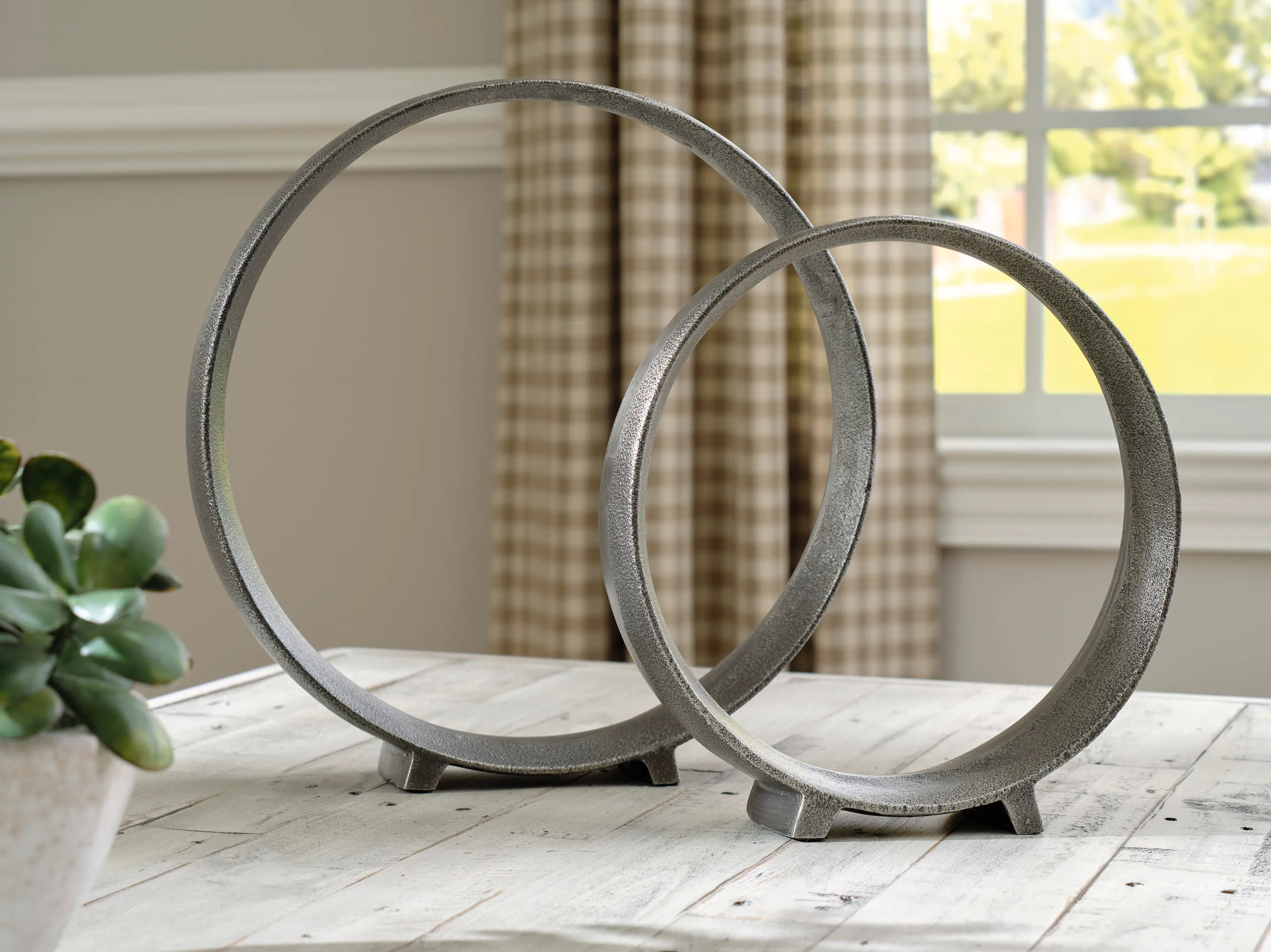 A modern take on classic geometric design, the Ryandale sculpture rounds out your decor in sleek style. The antiqued pewter-tone finish has a chic appeal that remains versatile, suiting spaces from contemporary to casual.