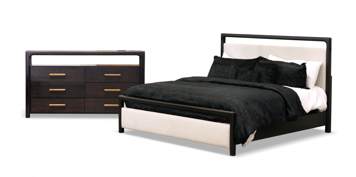 The Sigmund 4-Piece Queen Bedroom Set blends modern design with a touch of rustic warmth for a beautifully balanced look. Soft, rounded silhouettes combine with gently curved edges for a romantic presence, while the signature open bay offers both eye-catching style and practical space for electronics or everyday bedroom essentials. Crafted with oak veneers and solid Asian hardwoods, the collection features a rich sable finish accented by oil-rubbed brass hardware, delivering an elegant yet relaxed feel that elevates any bedroom.