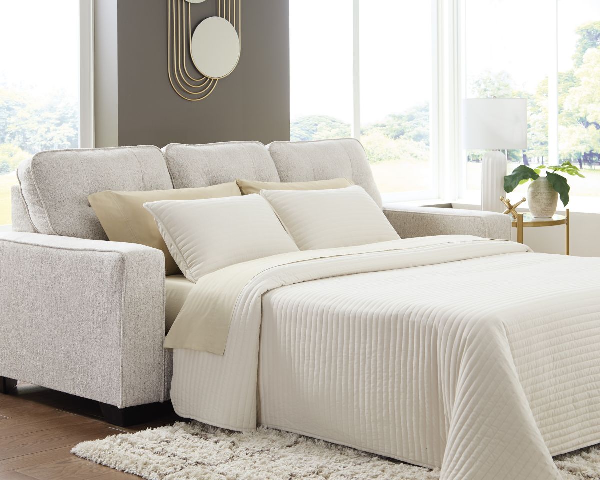 Sincere in its styling, this queen sofa sleeper marries classic function with modern design elements for truly transitional appeal. Its track arms lend a contemporary vibe while soft, durable upholstery ups the comfort level. Guests dropping by? The included memory foam mattress effortlessly provides extra sleeping space and neatly tucks away when not in use. And with the goes-with-anything neutral color, styling this sofa is made simple.