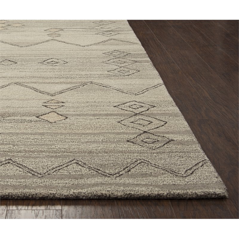 Discover the boho-chic patterned design of the hand-tufted Suffolk collection from Rizzy Home. This rug has a neutral and natural color palette made with shades of gray, beige, and brown.