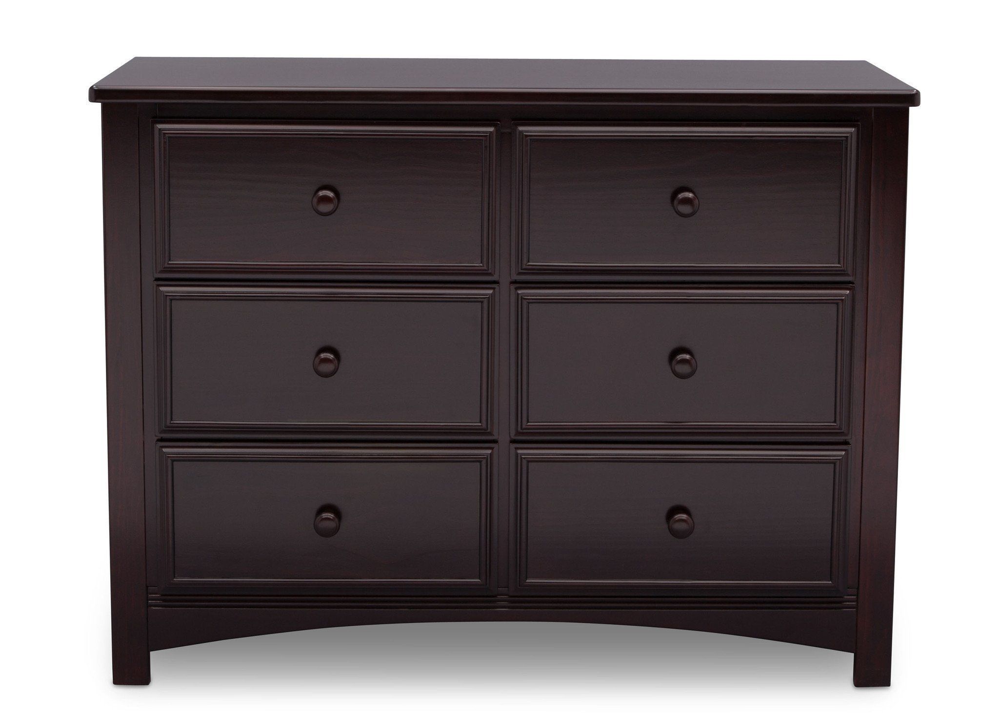 The Summit 6 Drawer Dresser features spacious drawers with wooden knobs and safety stops that prevent them from falling out. Sustainable wood materials and non-toxic finishes make this dresser an essential element for your new baby's nursery