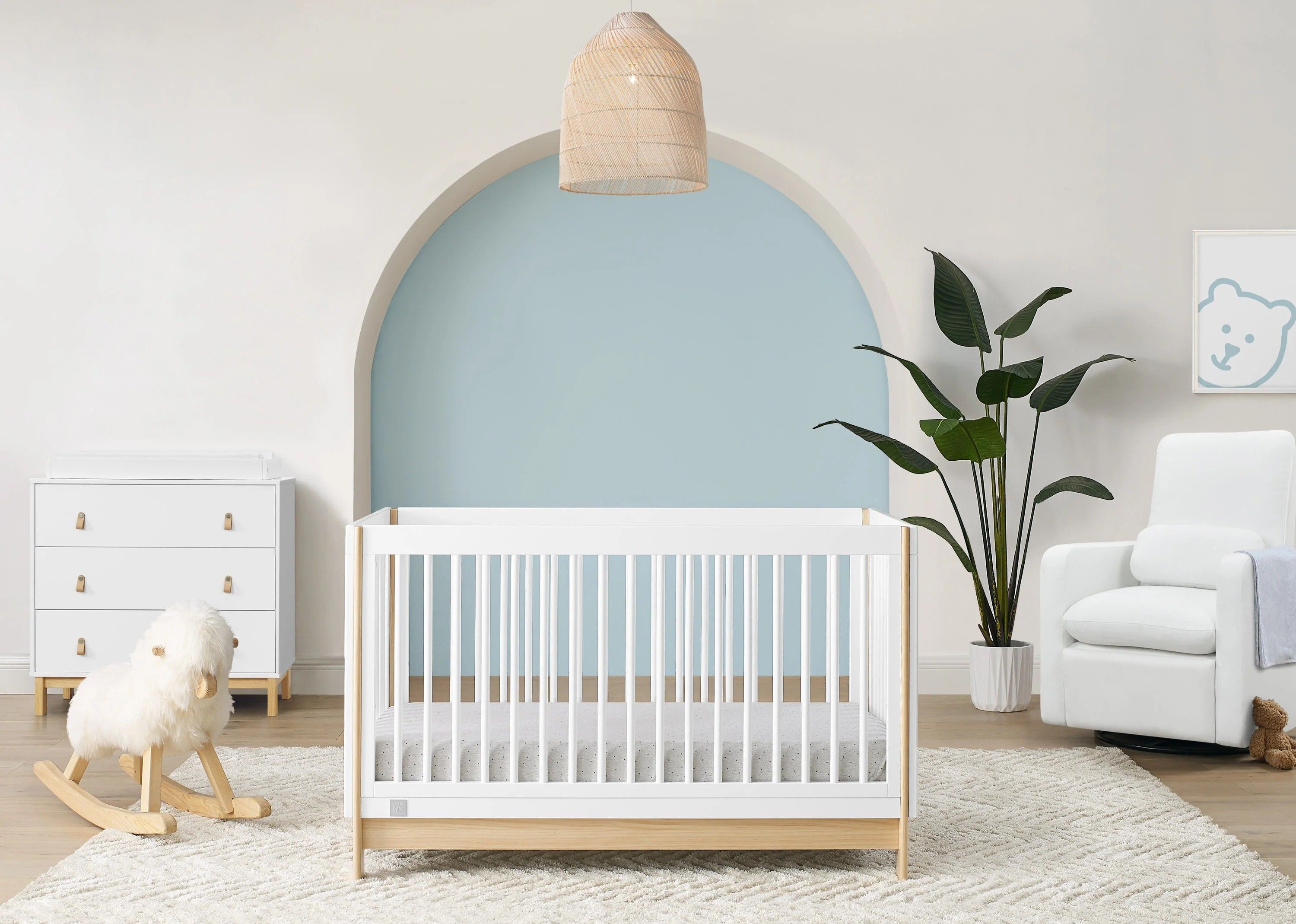 The babyGap Tate 4-in-1 Convertible Crib is a modern crib with natural accents on the base and corner posts. Crafted of sturdy, sustainable materials like New Zealand pine, this crib is the best choice for babies (and the planet!). Thoughtfully made to grow with your little one, the crib’s adjustable mattress support allows you to lower the mattress height as your baby grows. When your child is ready, its versatile design easily adapts from crib to a cozy toddler bed, daybed and sofa (conversion rail #W173726 sold separately). Plus, it’s GREENGUARD Gold Certified, which means it’s built to contribute to cleaner air for a healthy home. Available in Bianca White/Natural, Navy/Natural and Ebony/Natural. Easily mix, match, and layer with other items from the babyGap Furniture and Bedding Collection.