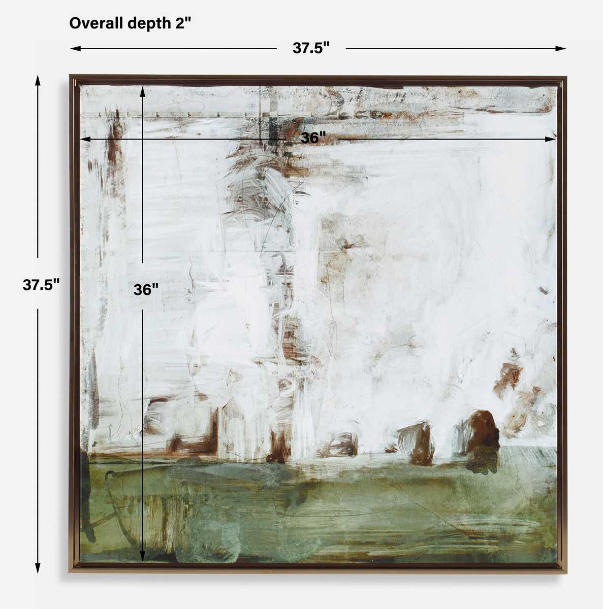 Using shades of olive green, warm umber and bright white, each brushstroke artfully captures the essence of a boardwalk journey. Surrounded by a simple gallery frame in bronze gold finish, this piece may be hung horizontal or vertical. Each canvas is proudly handcrafted and printed in the USA. Artwork by Hayley Michelle.