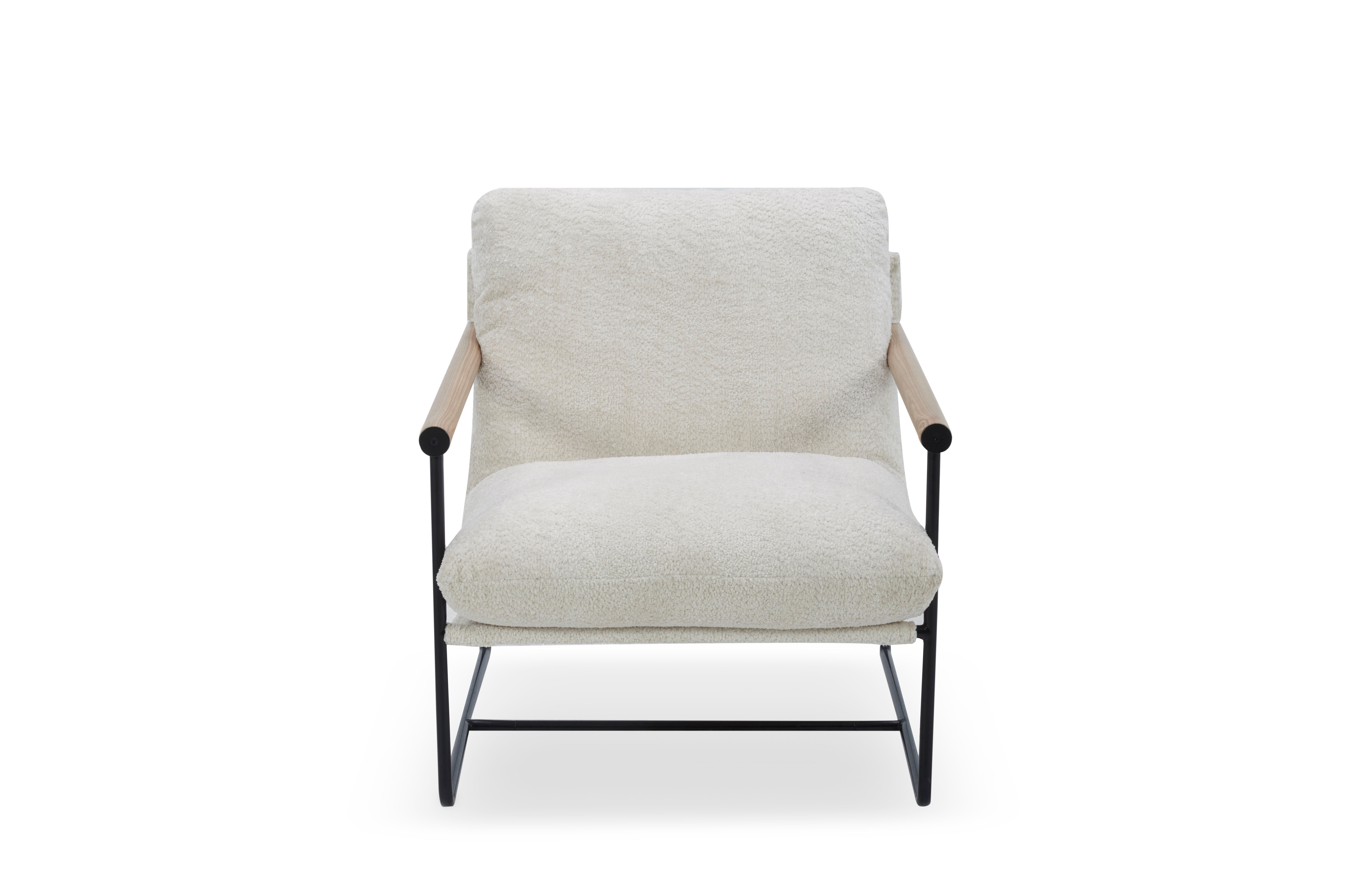 Embrace the retro aesthetic with the Utopia accent chair, made with a mid-century modern design. The soft beige fabric upholstery and plush cushioning will keep you comfortable while you read your favorite books or watch your shows. Made with a metal base and wooden arms that enhance the mid-century modern style, the Utopia accent chair will stay stylish for years to come.