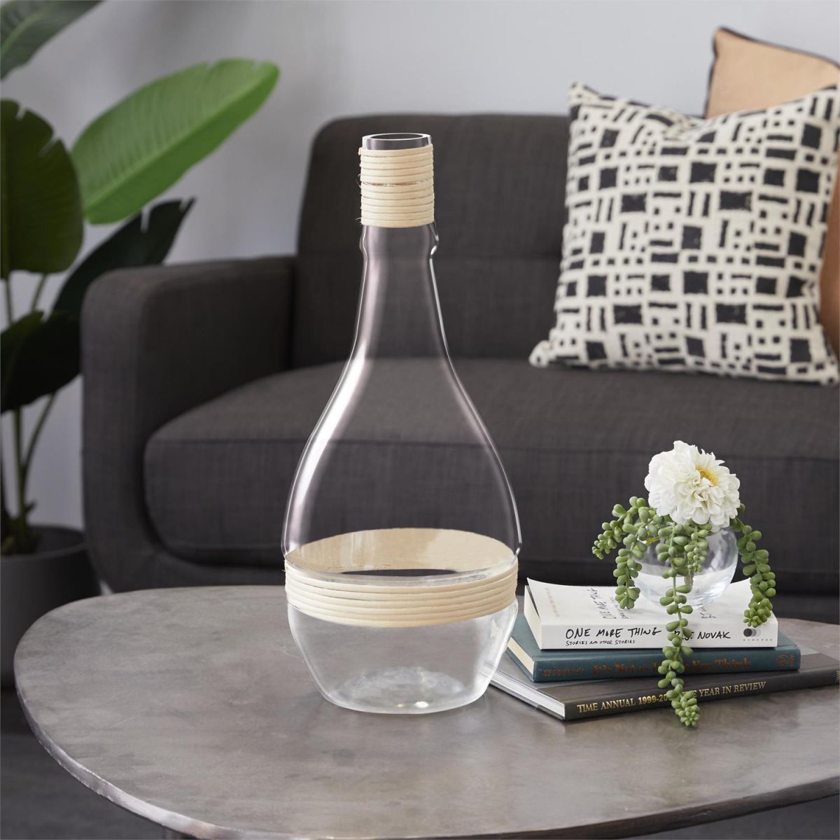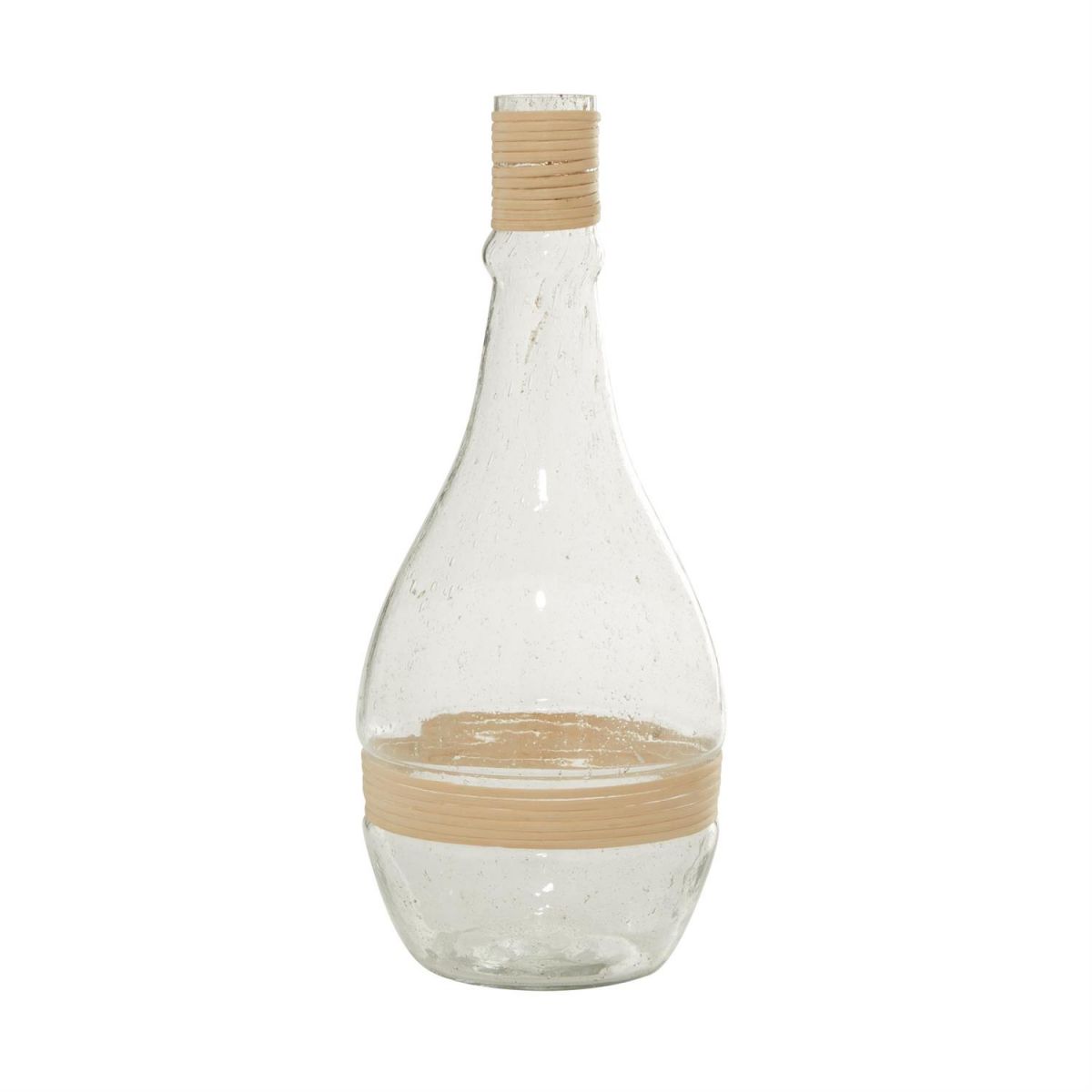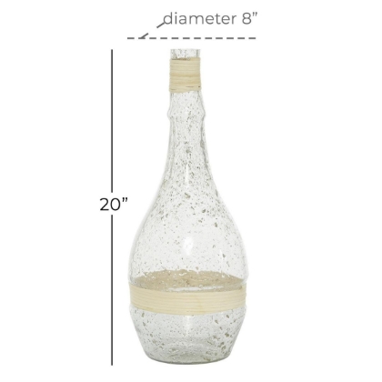 Inspired by blissful serenity and the allure of the sea, where soothing hues and natural textures bring effortless charm to the home. This clear decorative vase is made from high-quality glass accented with rattan. The round home decor vase features a polish clear glass finish with light brown rattan detailing. The glass vase includes intricate rattan accents that add a coastal touch.