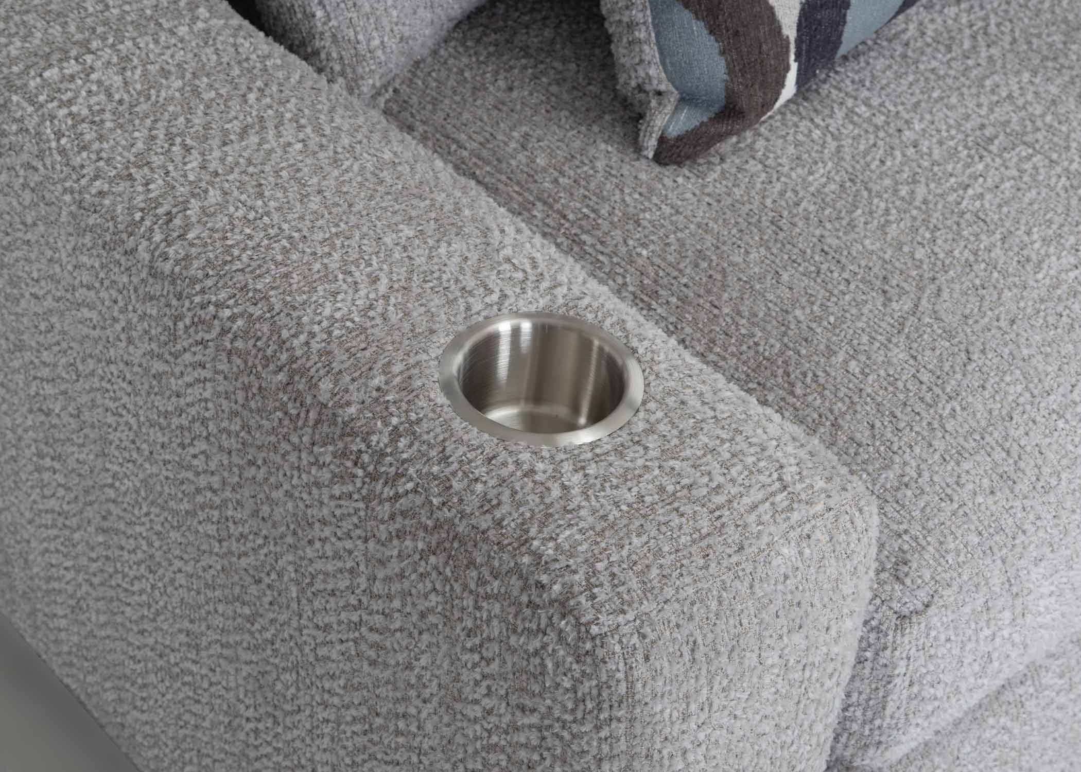 Elevate your living space with the casual comfort of the 866 Venus Collection. This two-piece sectional seamlessly combines contemporary design with a sleek silhouette, spacious seating, and plush cushions that invite you to relax or entertain with ease. It is upholstered in a neutral gray fabric that is both soft and durable and comes with stylish patterned accent pillows that add a touch of sophistication. The addition of two stainless steel cupholders and low-profile legs make it the perfect centerpiece for any living room. The Venus boasts our WOW Seating System, which combines precision-cut wood frames with gel-blended foam seating for exceptional support. Reversible seat and back cushions are designed to be flipped, allowing for even wear and extending the lifespan of your furniture. Transform your home with this chic and cozy addition designed for both style and functionality.