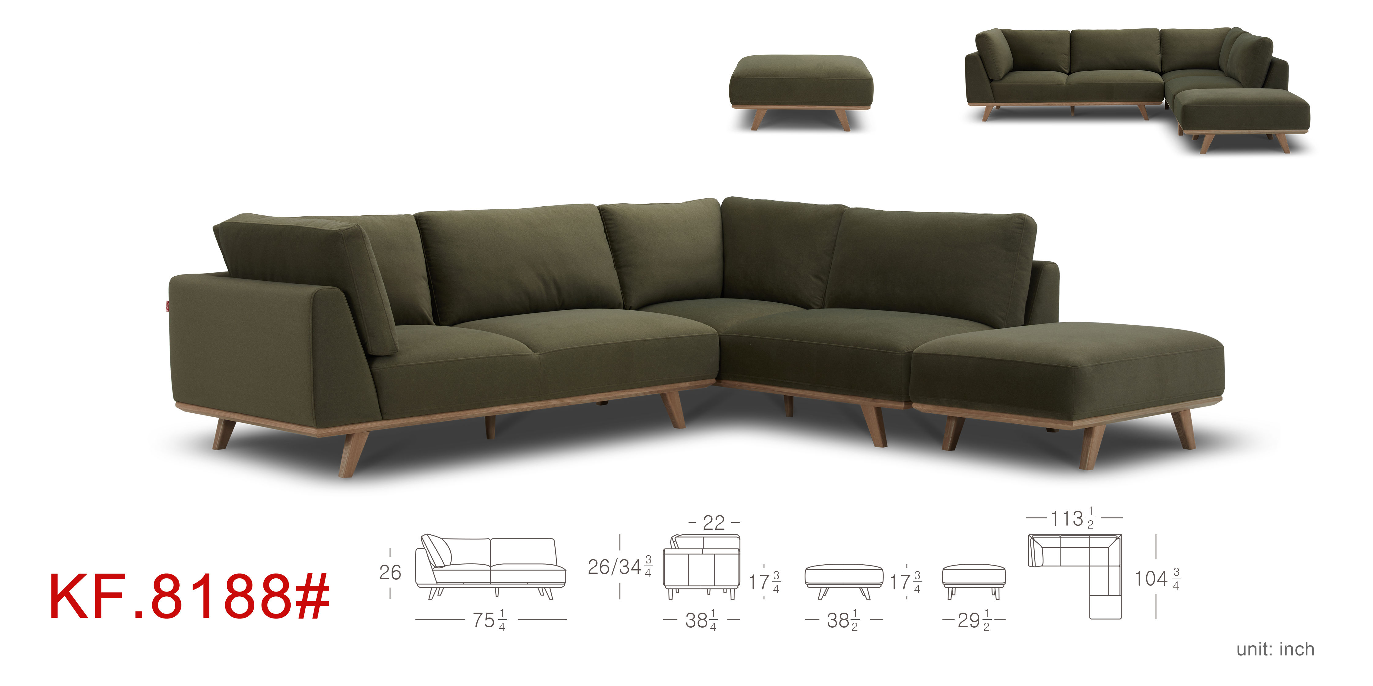 Add a mid-century touch to your living space with the Vesper sectional. Made with forest green fabric upholstery, you can sit down in the plush cushions and relax in style after a long day. The wooden base and splay legs just further enhance the modern mid-century design on this sectional.