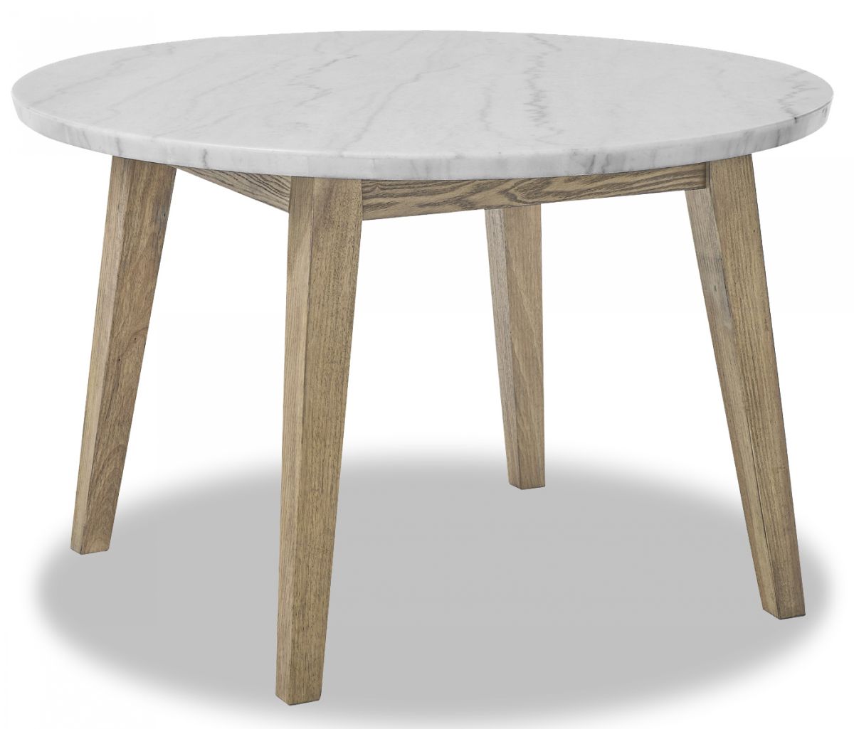 The epitome of sophisticated simplicity, the Vida 48″ Round White Marble Table seamlessly merges mid-century modern flair with Scandinavian design. At a full 48″ diameter, the table comfortably accommodates four, fostering intimate conversations and memorable gatherings. Adorned with canted solid wood legs in a burnished blonde finish, it exudes an airy elegance that elevates any room. Embrace the allure of round-table intimacy and timeless style with the Vida Marble Table.